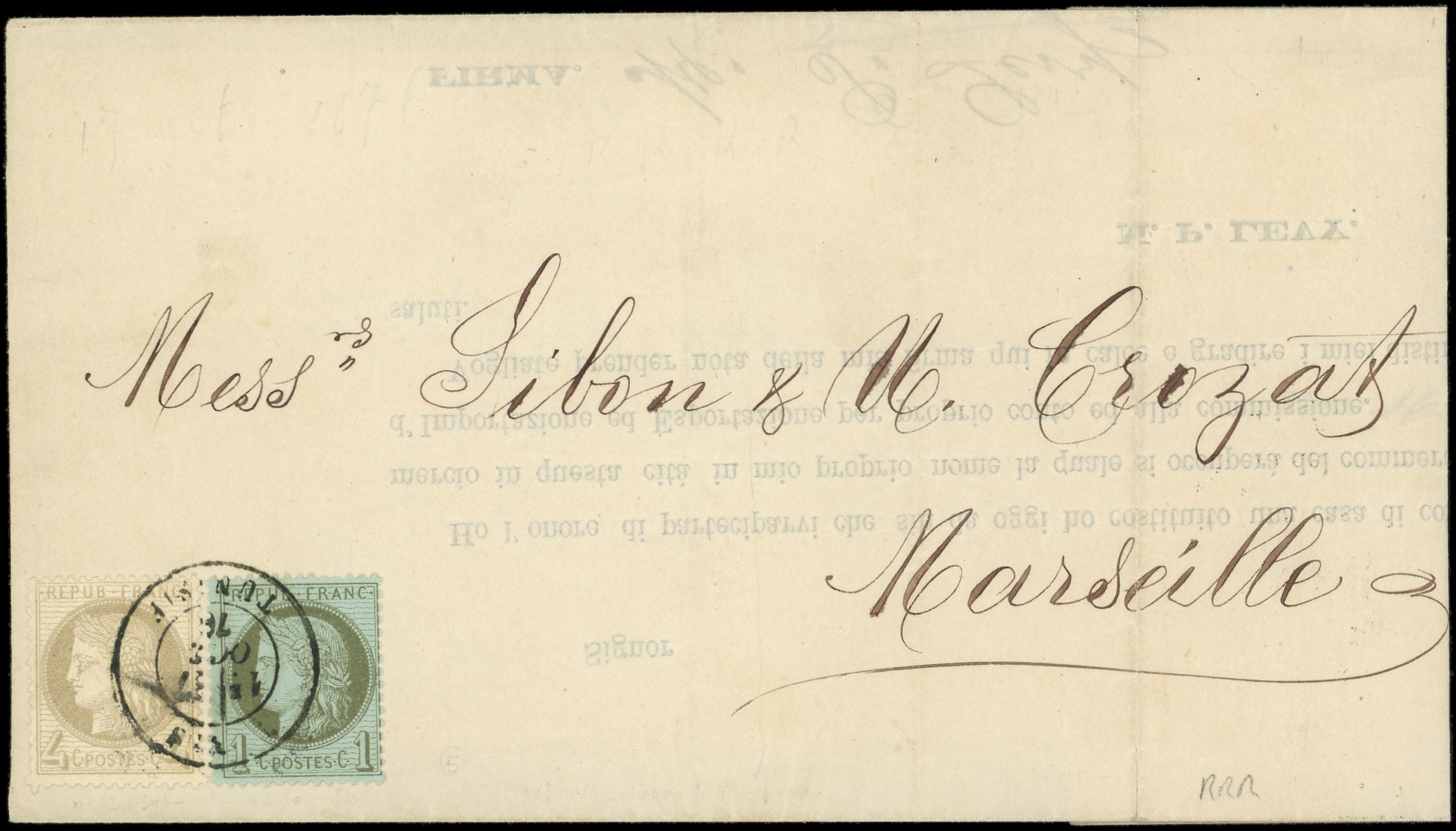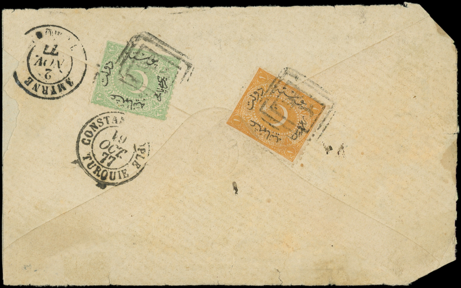 TREBIZONDE 11/10/77 s. Env. pour HALEP, passage CONSTANTINOPLE 19/10, SMYRNE 2/11, MIXTE avec 2 t. TURCS, TB (Image) (Image2)