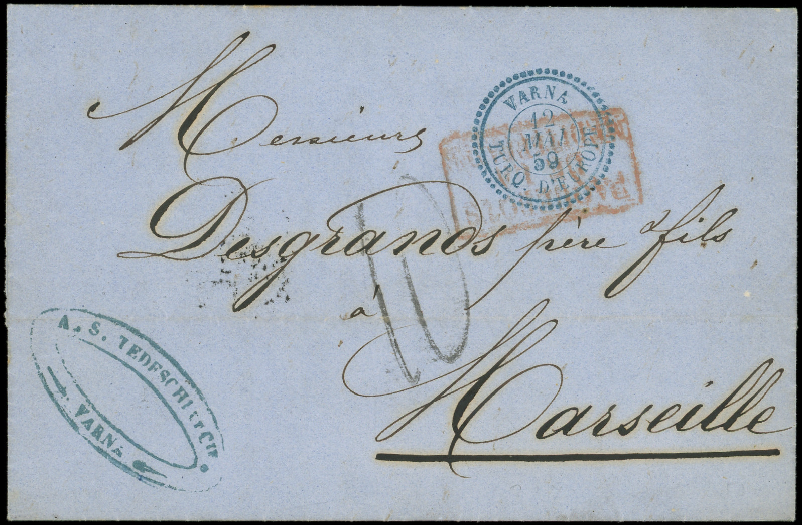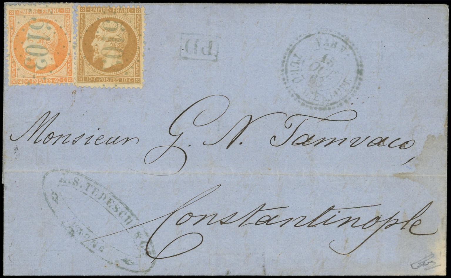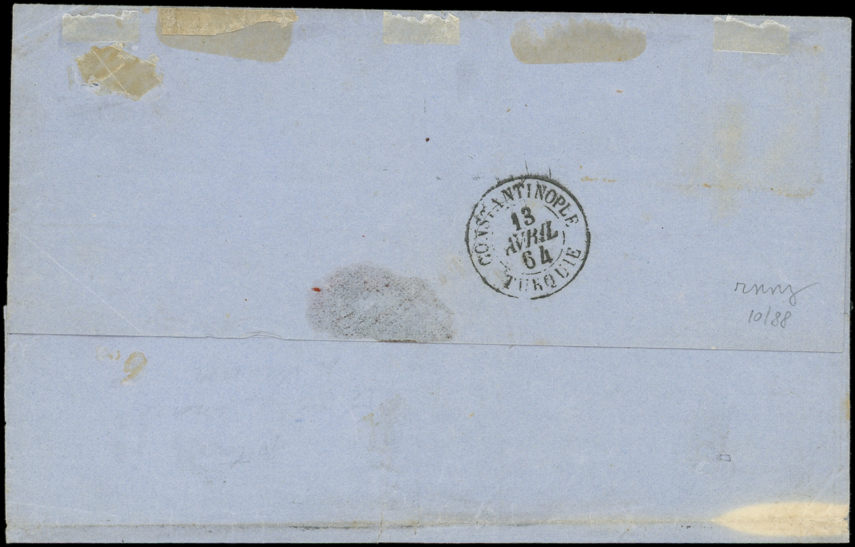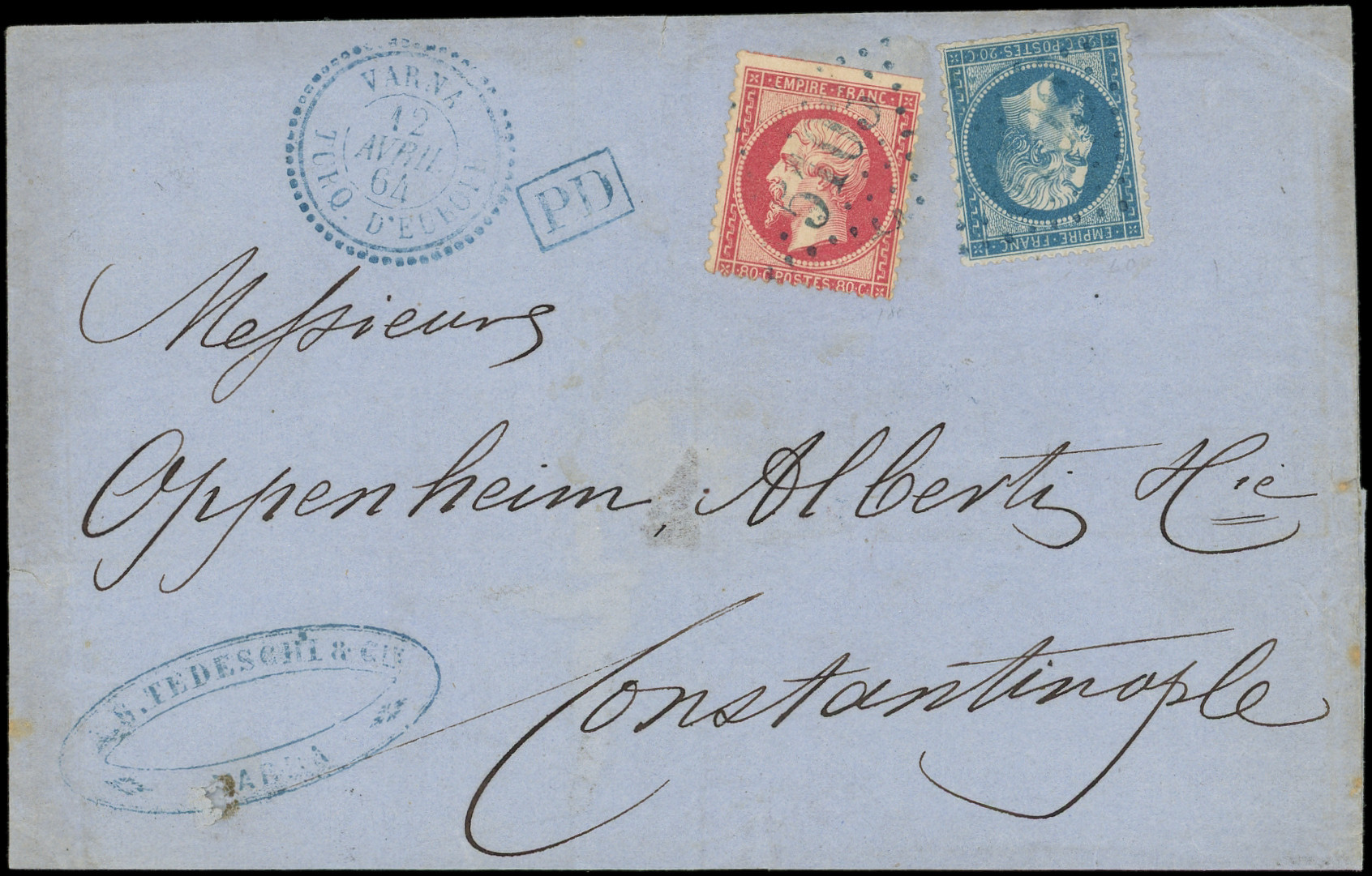 GC 5103 s. LSC, càd VARNA TURQ. D'EUROPE 12/4/64, le tout en bleu, arr. CONSTANTINOPLE, 13/4, DOUBLE port, TTB (Image) (Image2)
