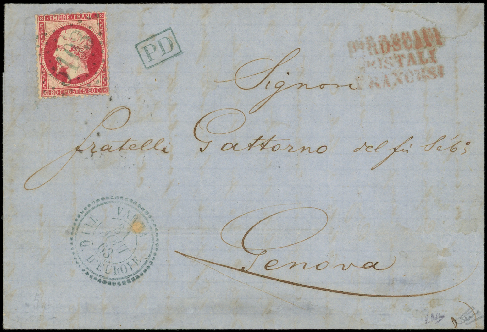 s. LAC, càd VARNA TURQ. D'EUROPE 31/8/63, le tout en bleu, arr. GENOVA, TTB (Image)