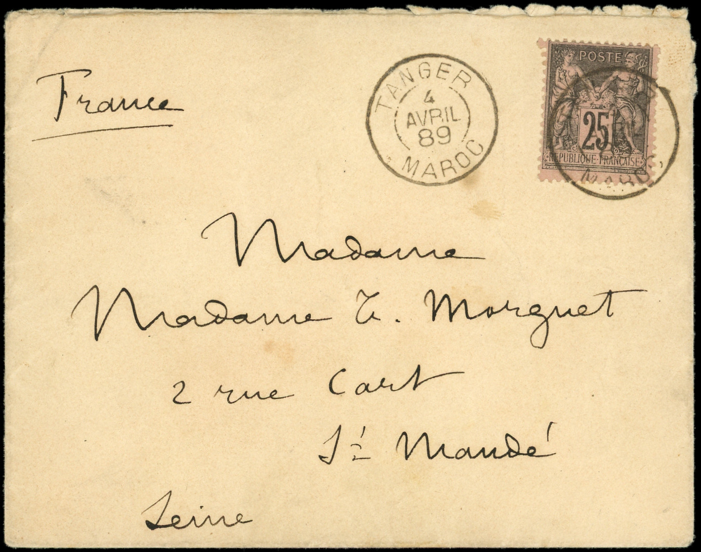 TANGER MAROC 4/4/89 s. Env., arr. St Mandé 10/4, TTB (Image) (Image2)