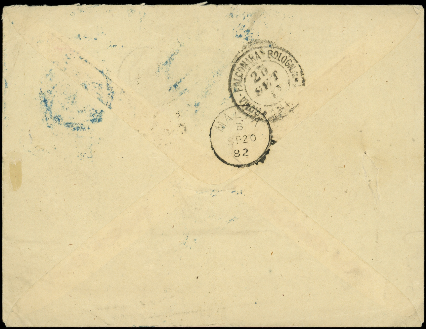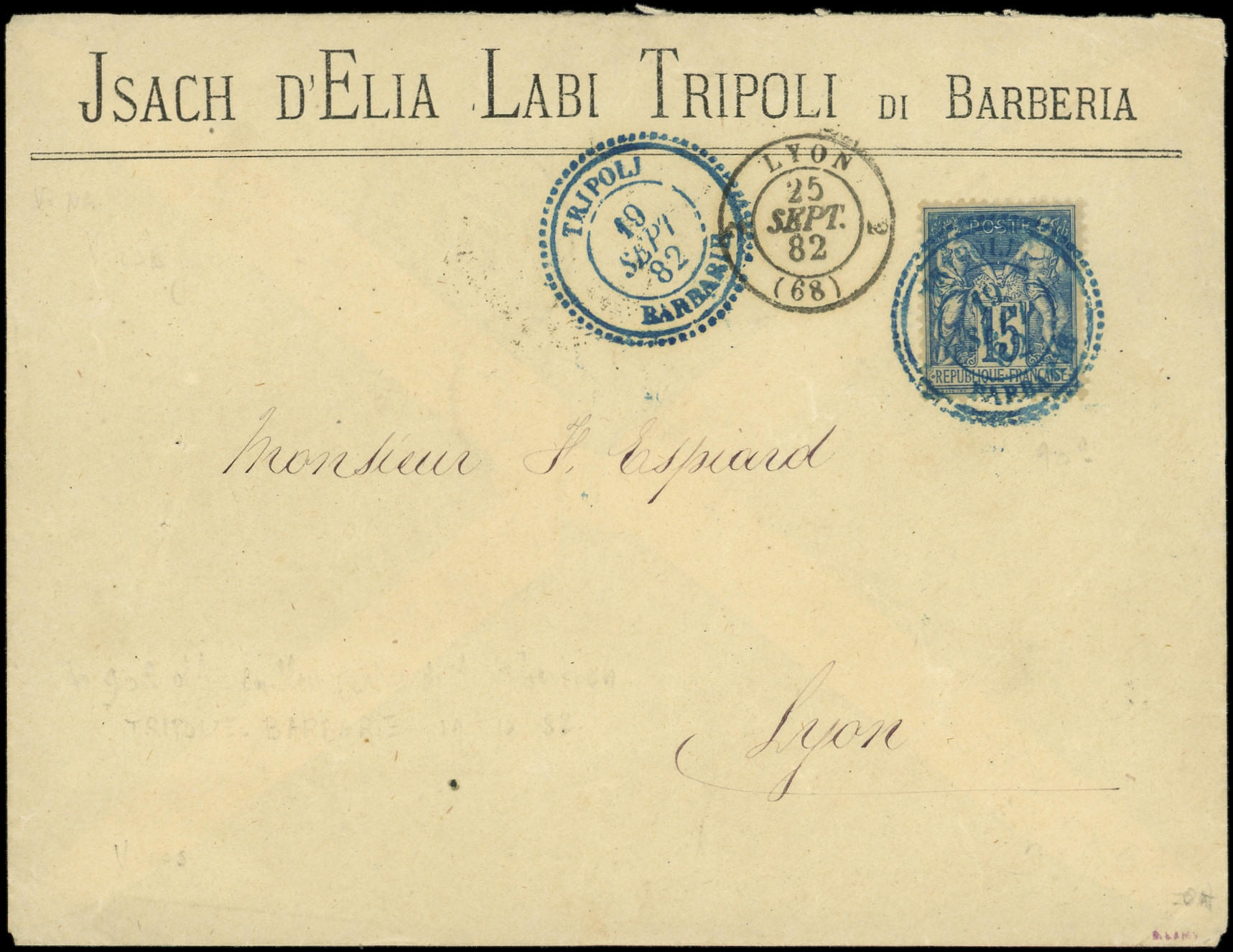 TRIPOLI BARBARIE 19/9/82 en BLEU s. Env., passage MALTA 20/9, BOLOGNA 23/9 et arr. LYON 25/9, TTB (Image) (Image2)