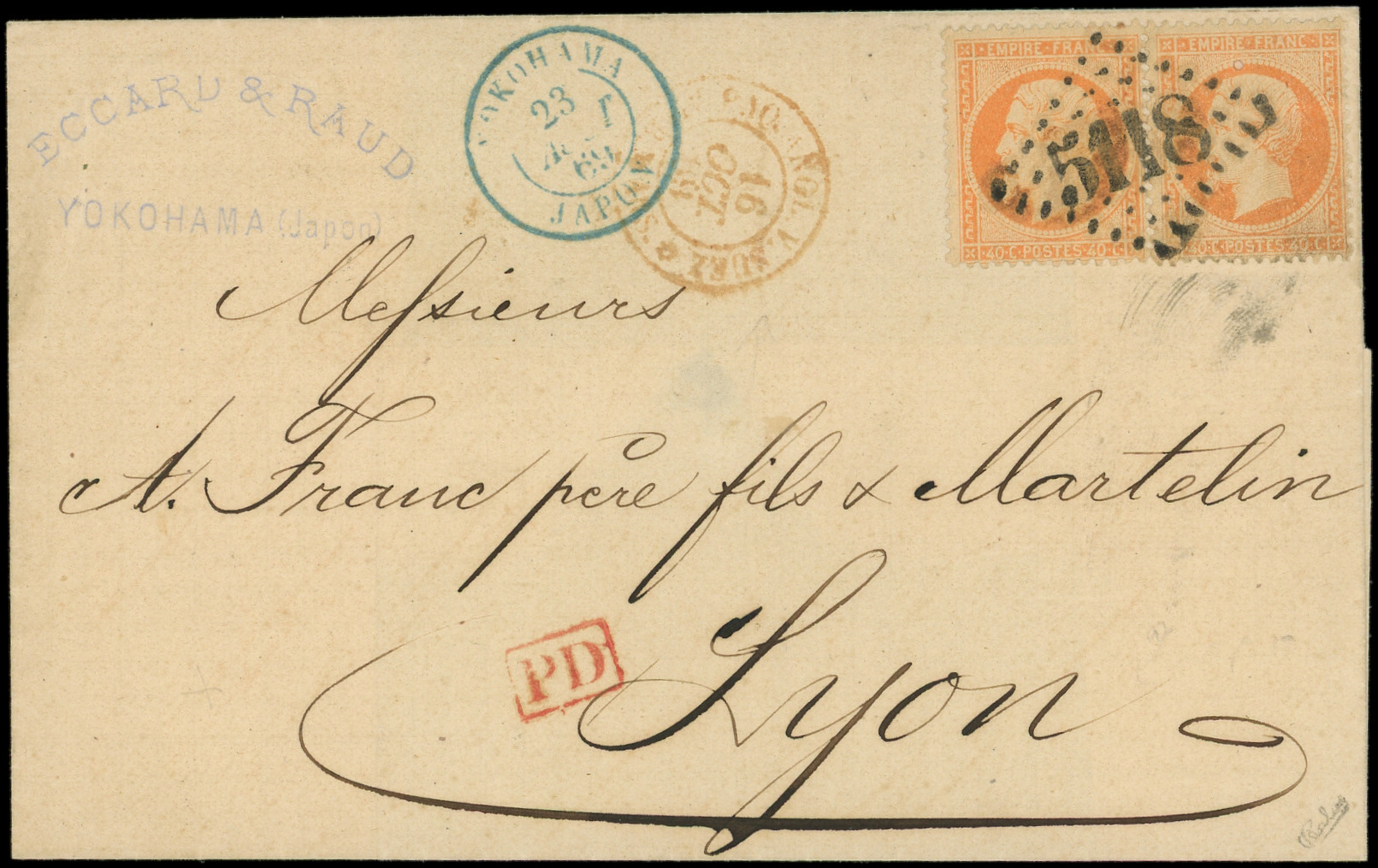 5118 s. LSC, càd BLEU YOKOHAMA JAPON 23/8/69, càd rouge PAQ. ANGL. V. SUEZ AMB. MARS 16/10, arr. Lyon, combinaison RR et TTB (Image) (Image2)