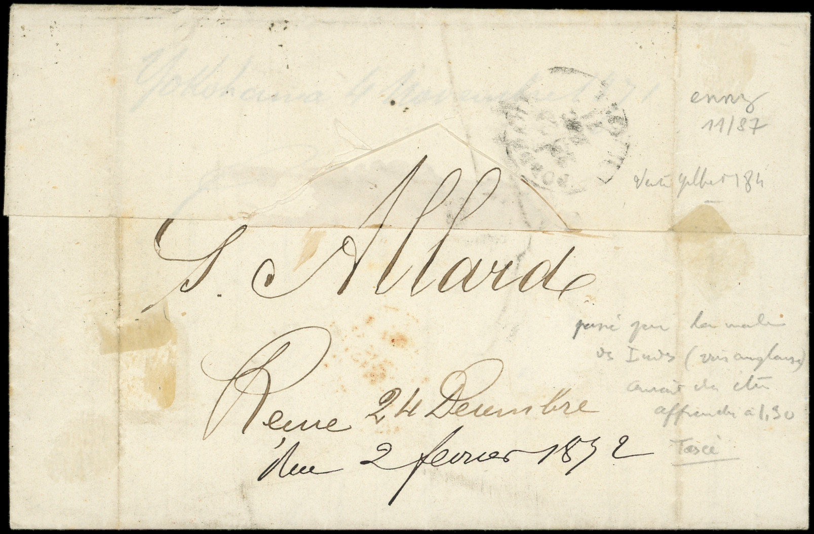obl. GC 5118 s. LAC, càd YOKOHAMA Bau FRANCAIS 4/11/71. Aurait dû être affr. à 1f30, tarif du 1/7/71, d'où la griffe "affrt insuff." et TAXE 3 plume, arr. Bordeaux 24/12, TTB