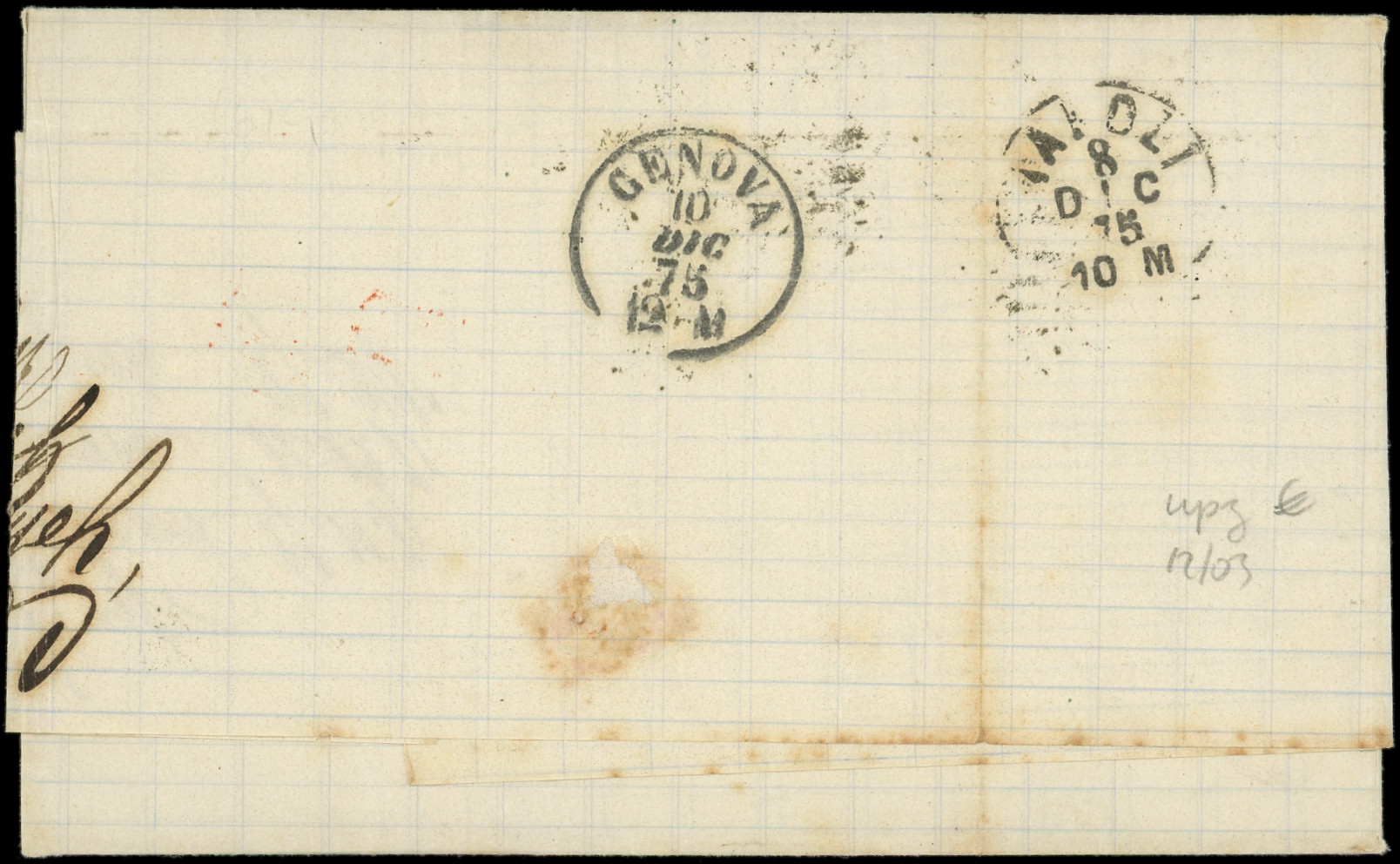 petit pli d'archive) + 1 ex., obl. GC 5118 s. LSC, càd YOKOHAMA JAPON 25/10/75, passage NAPOLI 8/12 et arr. GENOVA 10/12, TB (Image) (Image2)