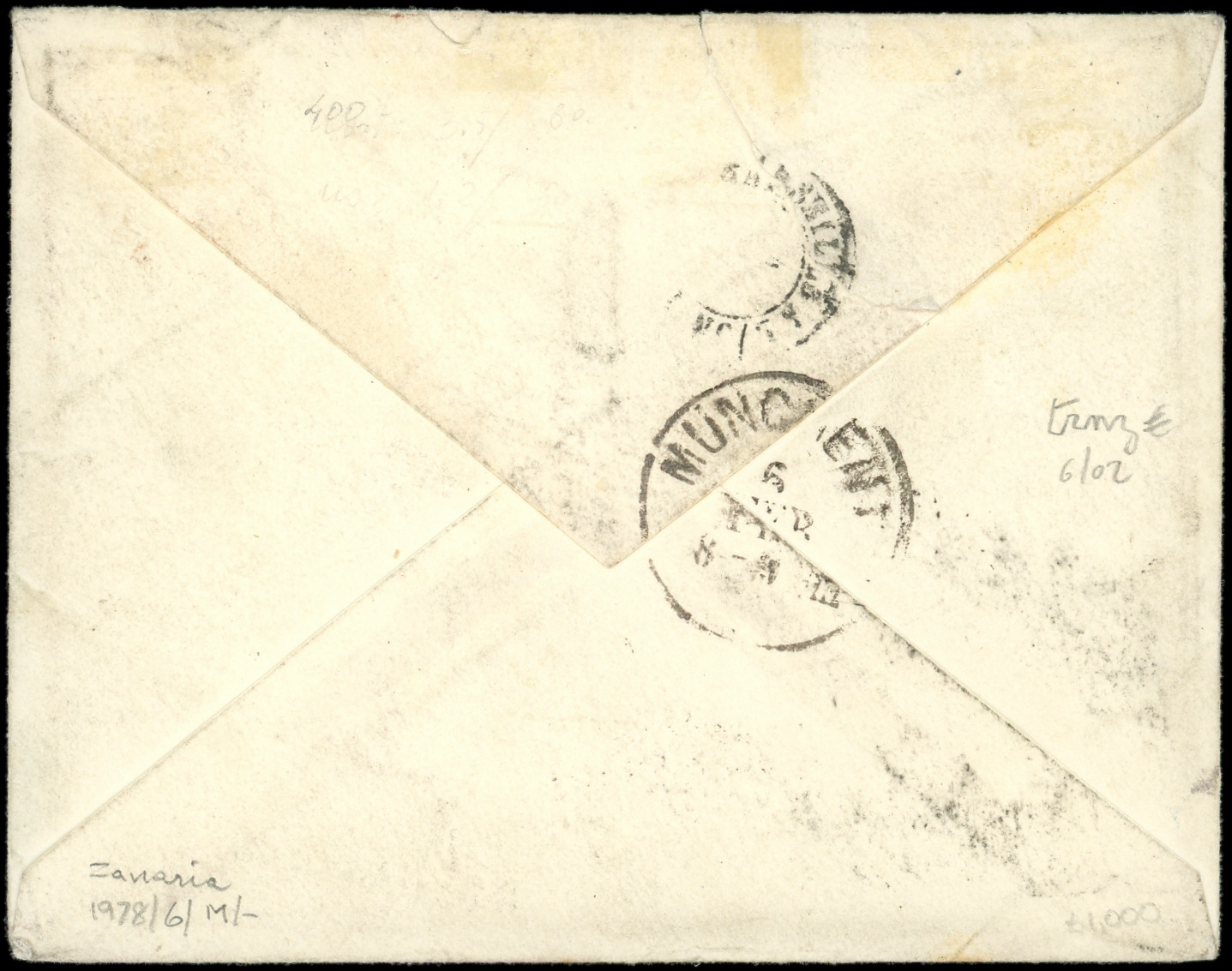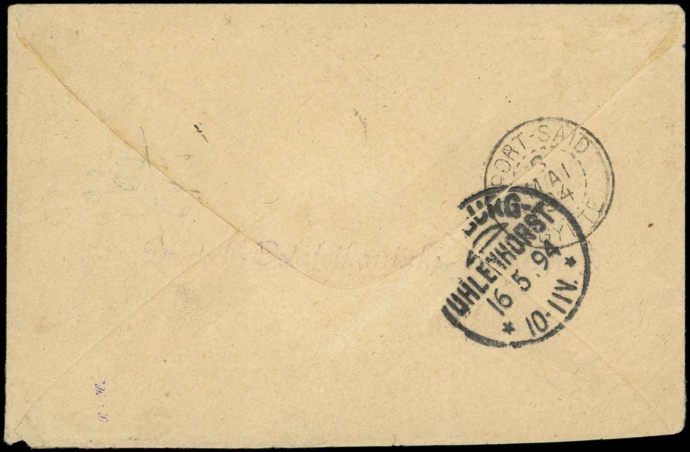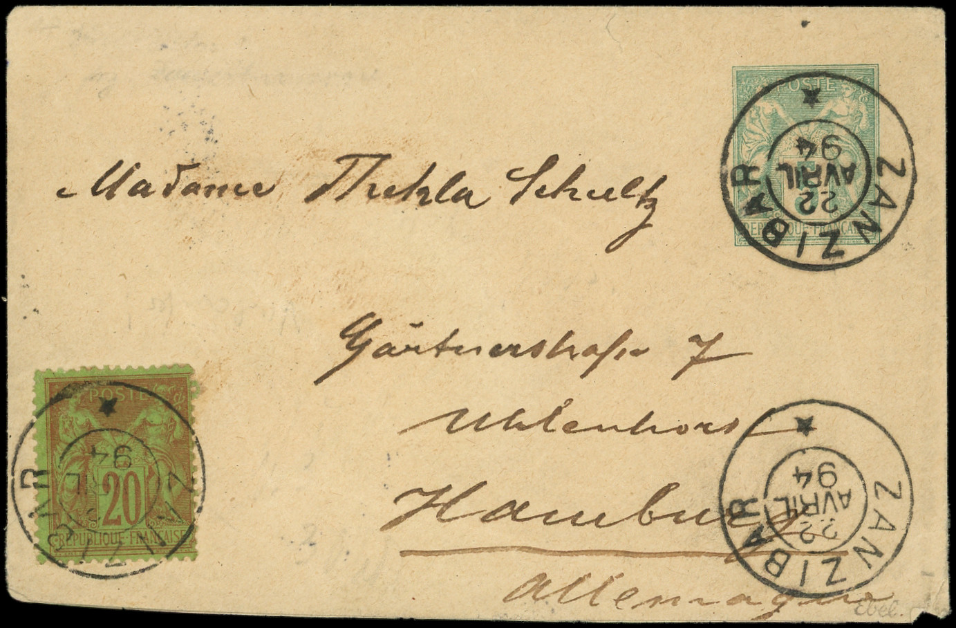 ZANZIBAR 22/4/94 s. Env. Entier 5c. vert, passage PORT SAID et arr. HAMBURG 16/5, TTB (Image) (Image2)