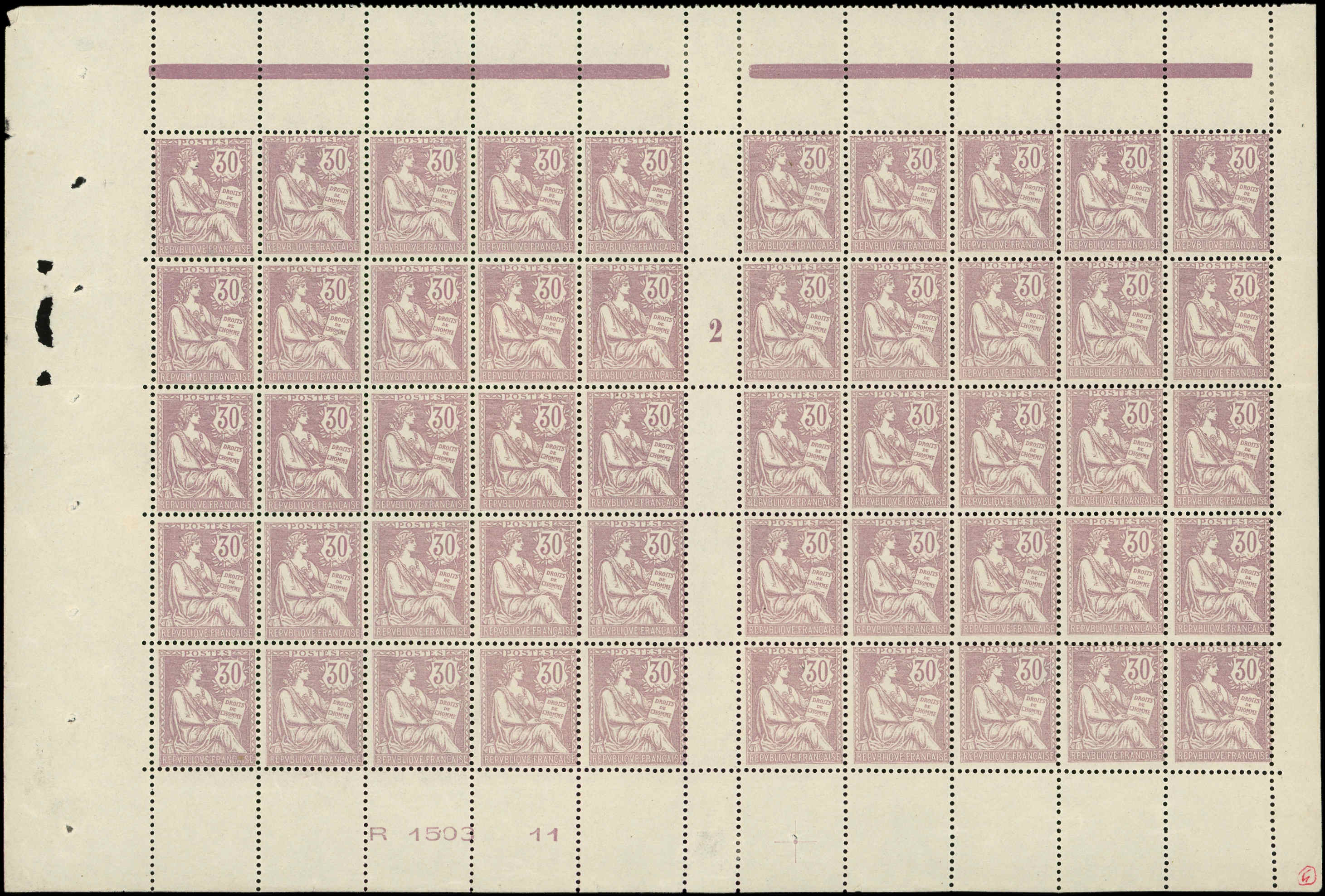 Retouché, 30c. violet, PANNEAU de 50, Superbe (Image)