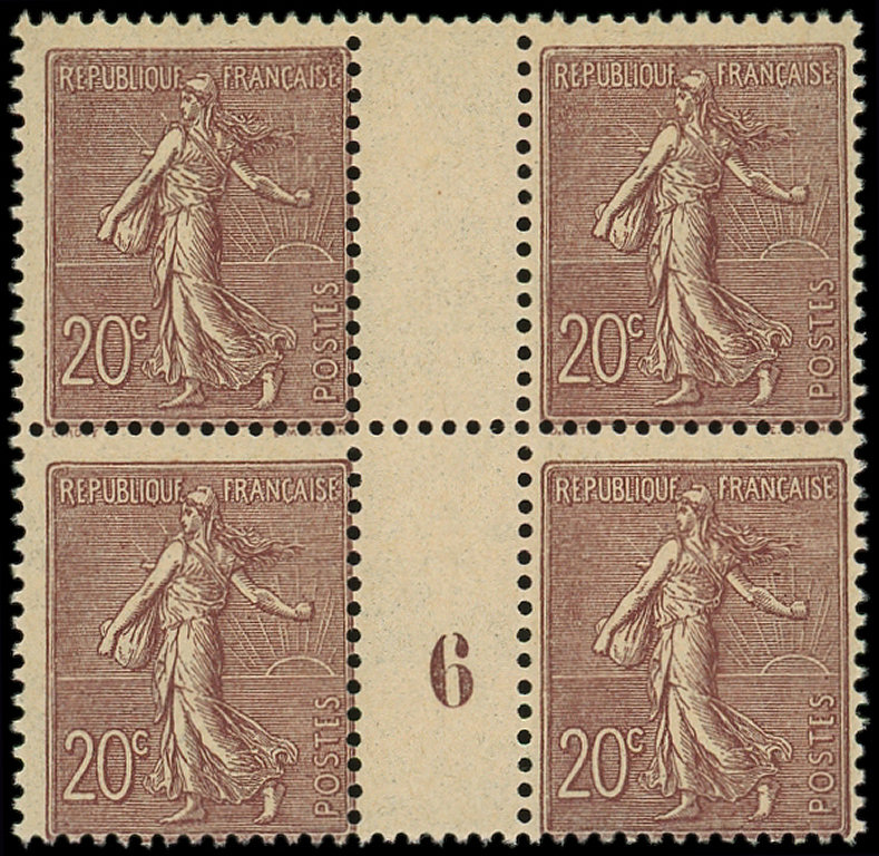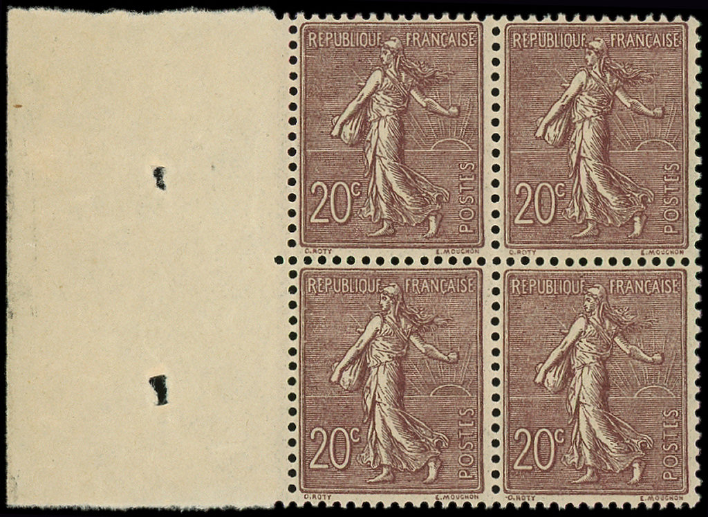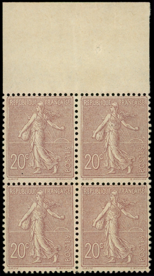 Lignée, 20c. brun-lilas foncé, BLOC de 4 Mill. 6, TB (Image)