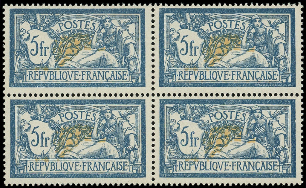 5f. bleu et chamois, BLOC de 4, très frais, TB (Image)