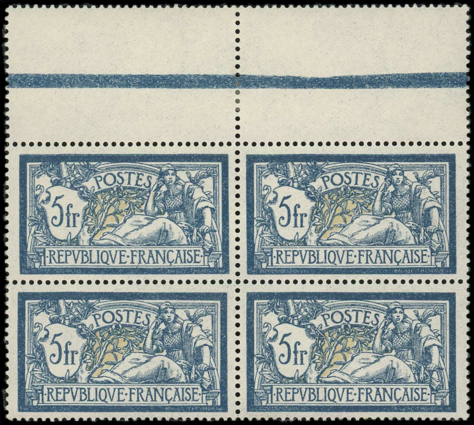 5f. bleu et chamois, BLOC de 4 bdf, bon centrage, frais et TTB (Image)
