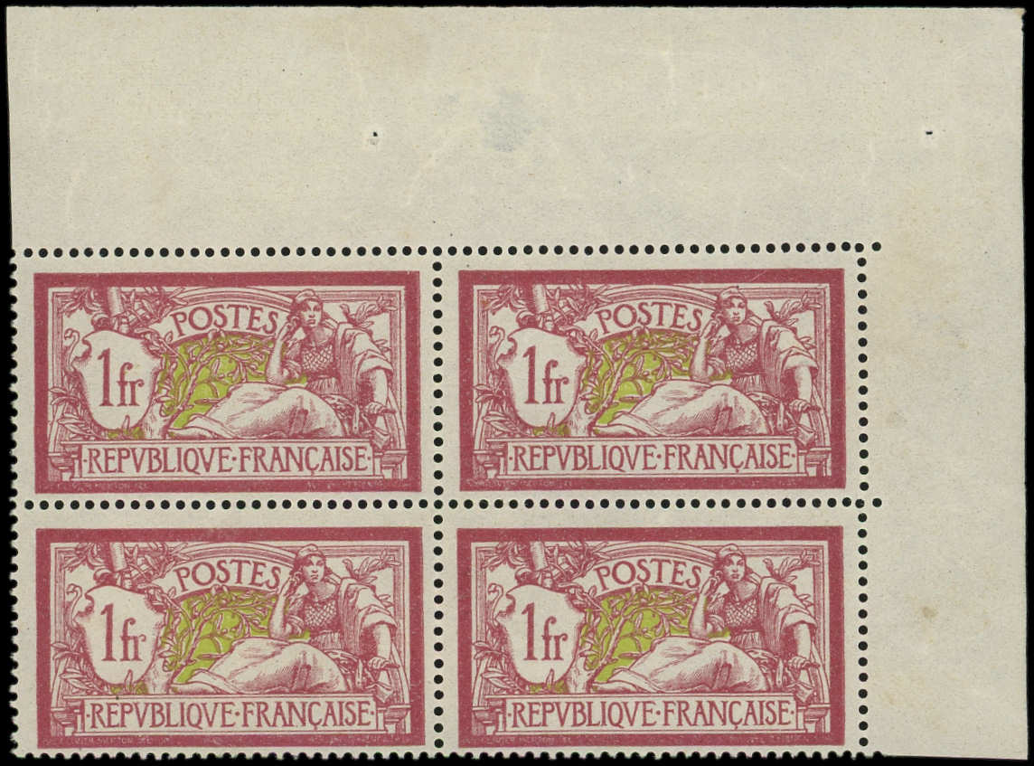 1f. lie de vin et olive, BLOC de 4 cdf, bon centrage, frais et TTB (Image)