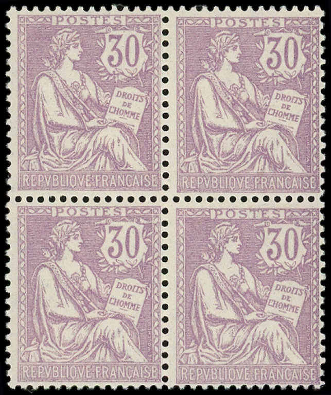 Retouché, 30c. violet, BLOC de 4, bon centrage, TTB (Image)