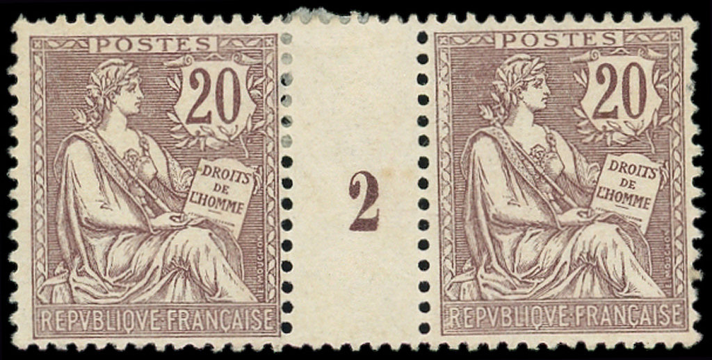 Retouché, 20c. brun-lilas, PAIRE Mill.2, TB (Image)