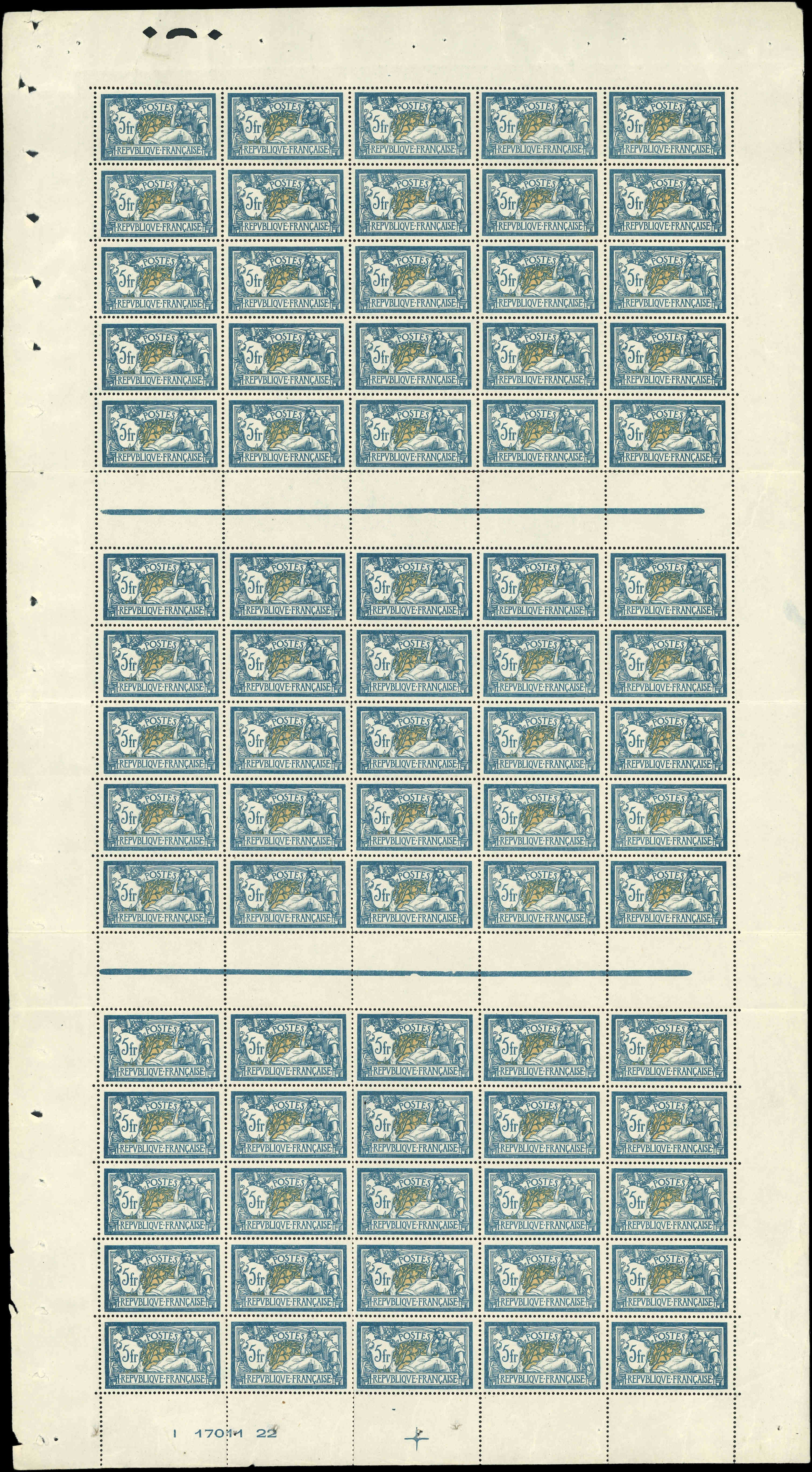 5f. bleu et chamois, FEUILLE de 75, très bon centrage d'ensemble, TB (Image)
