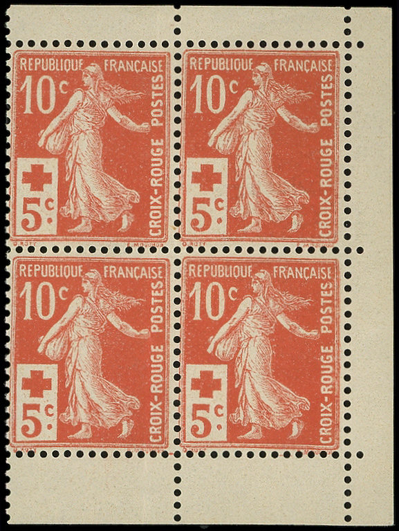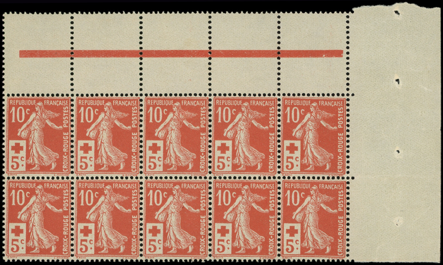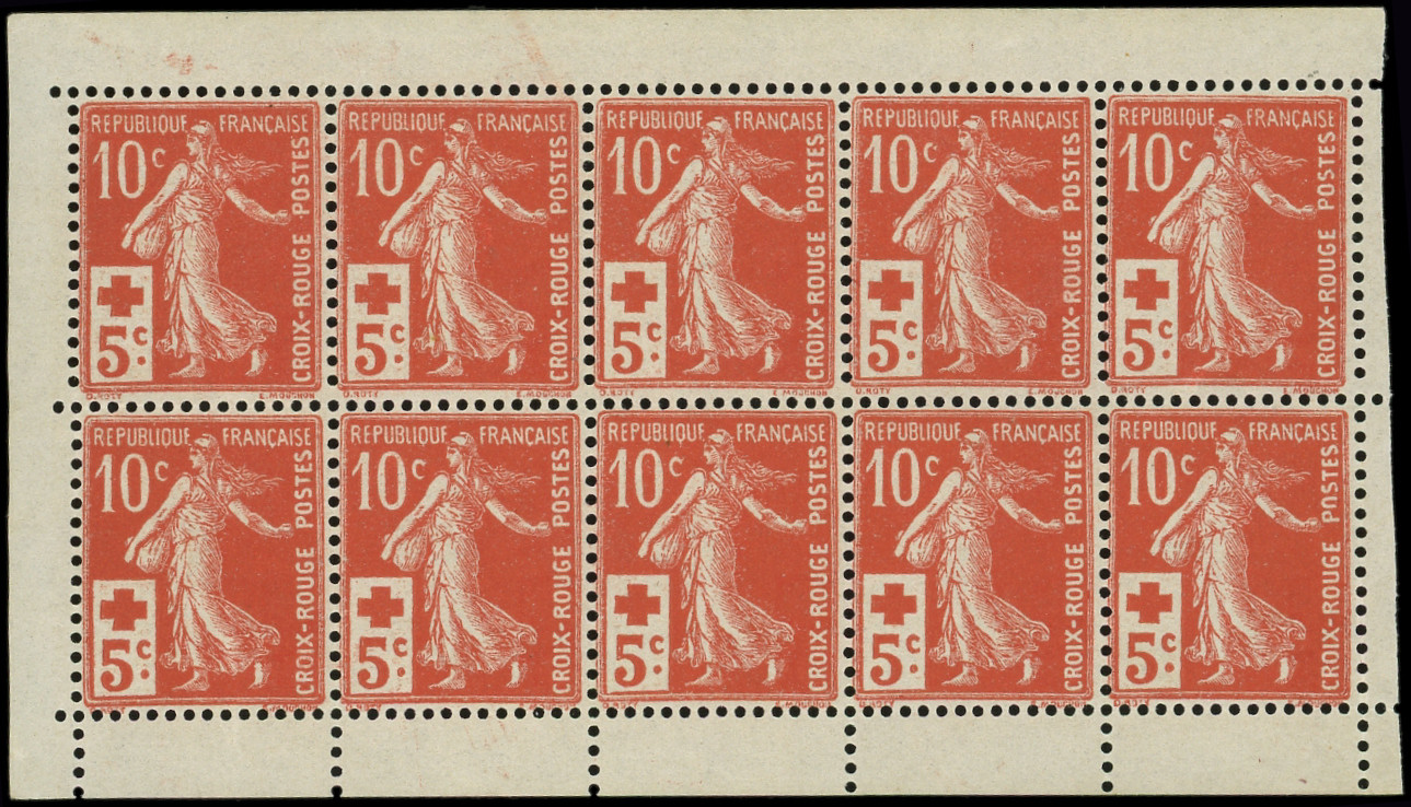 Rouge, 10c. + 5c. rouge, BLOC de 10 cdf, très bon centrage, très lég. froiss. de g. d'origine, sinon TB (Image)