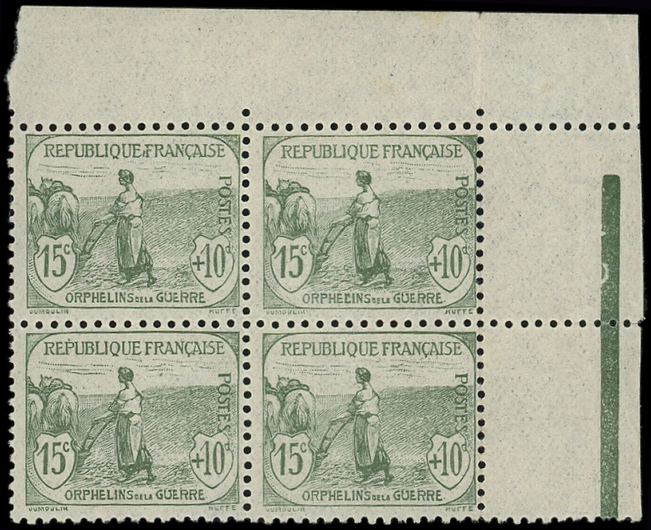Orphelins, 15c. + 10c. gris-vert, BLOC de 4 cdf, TB (Image)