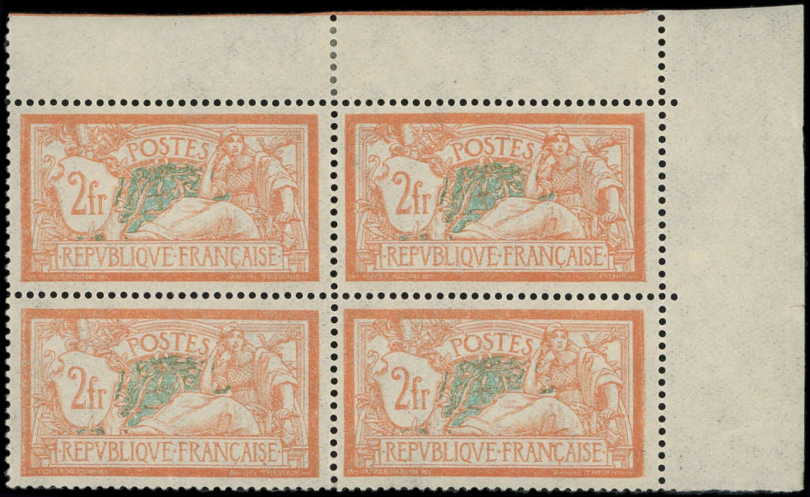 2f. orange et vert-bleu, BLOC de 4, très frais, TB (Image)