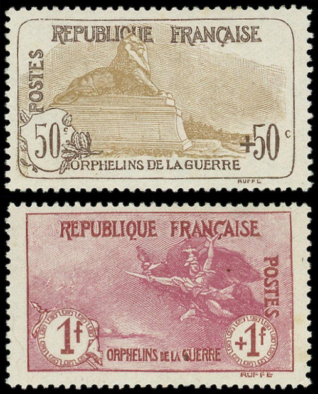 Orphelins, 50c. + 50c. brun clair et 1f. + 1f. carmin, TB (Image)