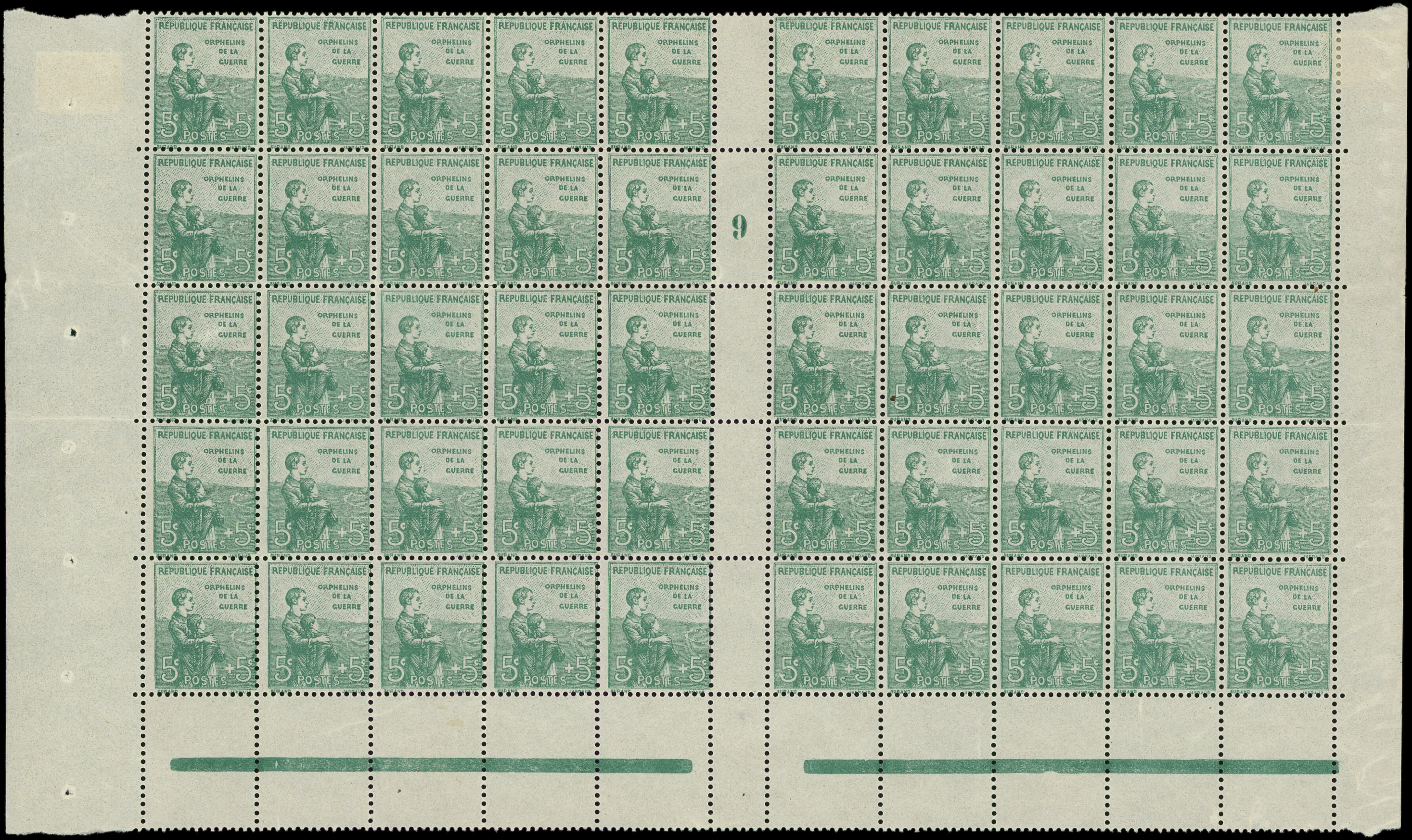 Orphelins, 5c. + 5c. vert, PANNEAU de 50 Mill.9, TB (Image)