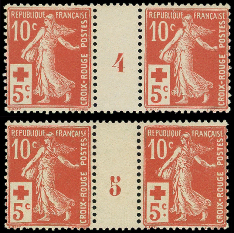 Rouge, 10c. + 5c. rouge, 2 PAIRES Mill.4 et 5, TB (Image)