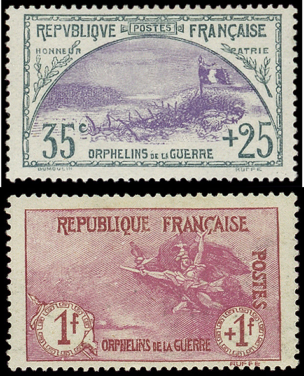 série Orphelins, 35c. + 25c. et 1f. + 1f., les 2 inf. trace de ch., TB. C (Image)