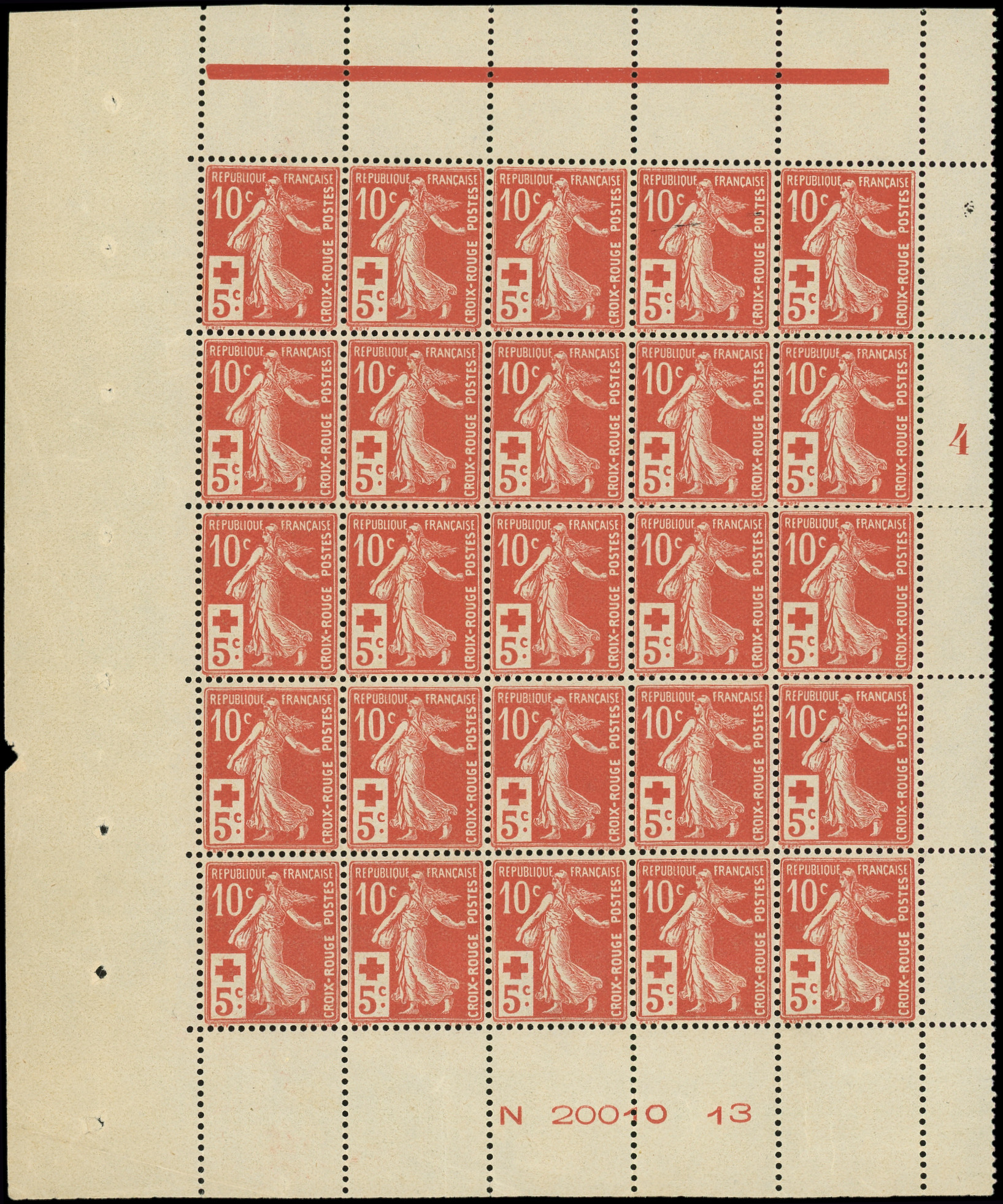 15c. + 5c. noir et rouge, FEUILLE de 75, TB (Image)