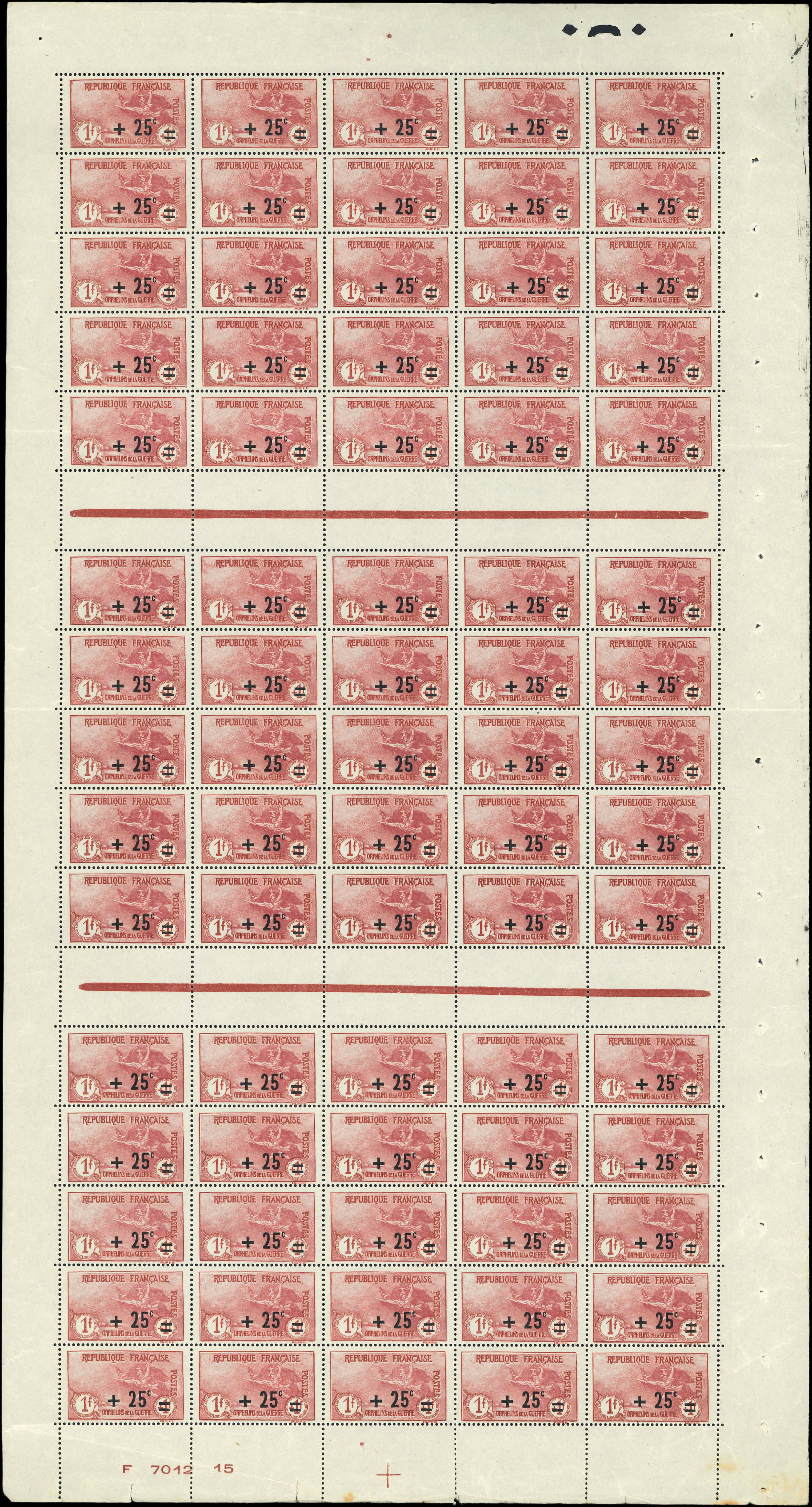 Orphelins, +25c. s. 1f. + 1f., FEUILLE de 75, TB (Image) (Image2)
