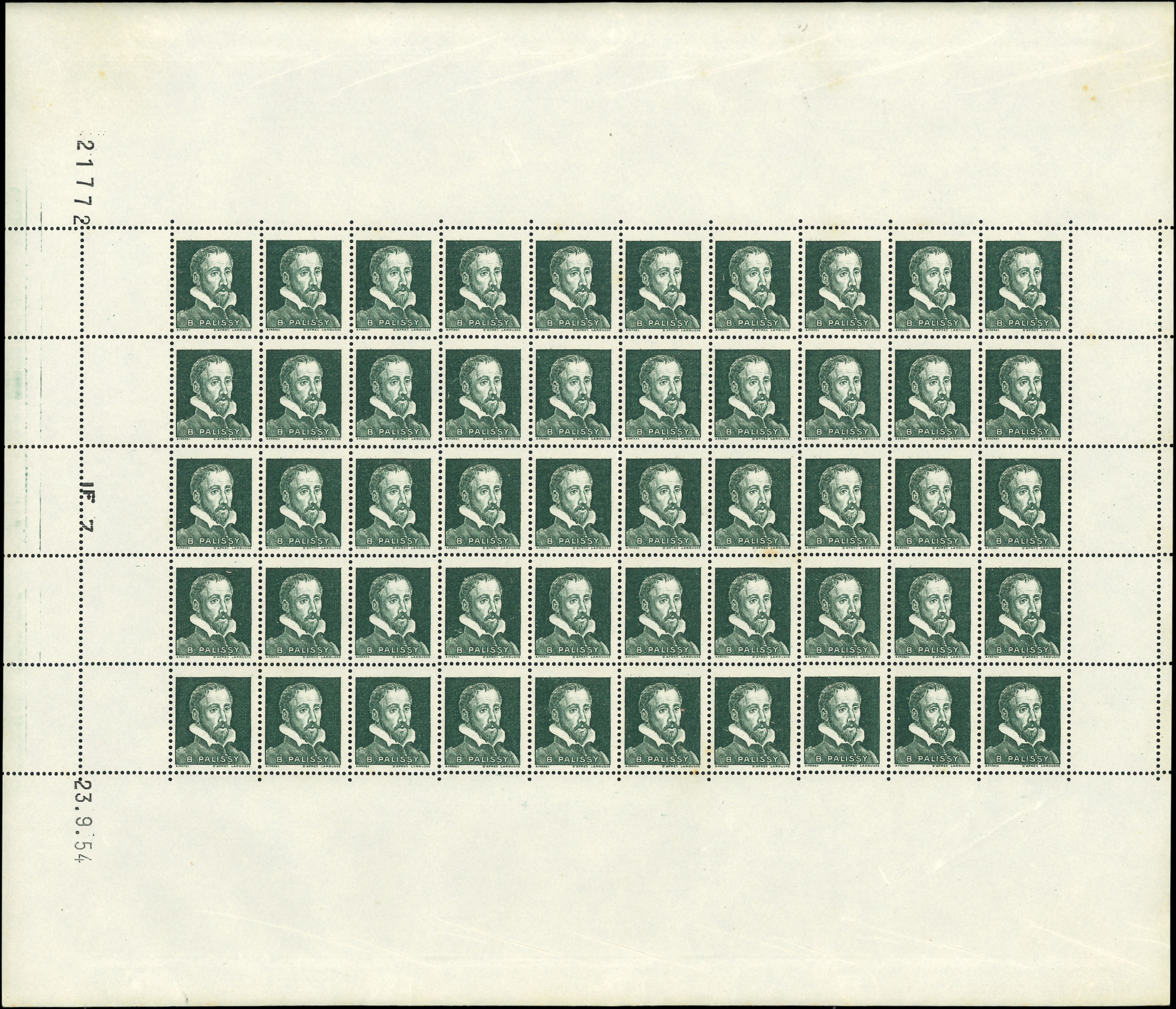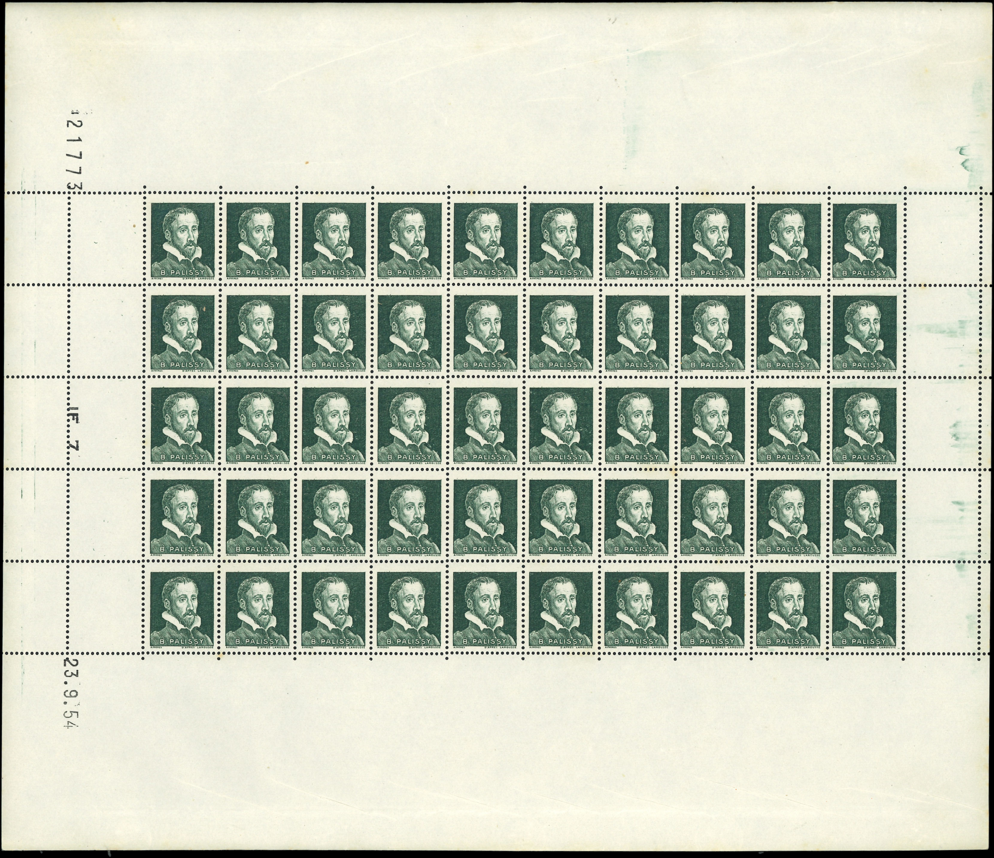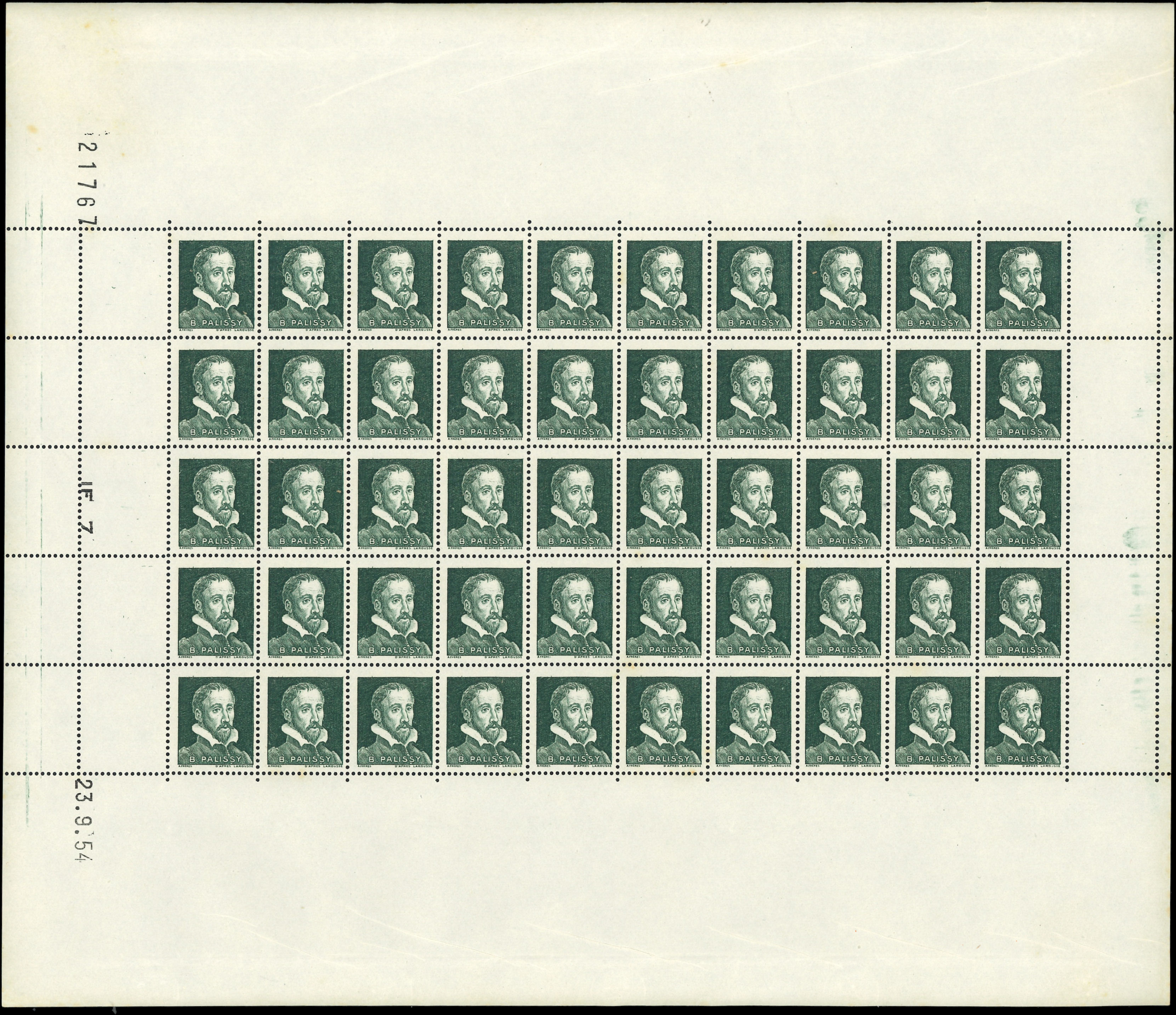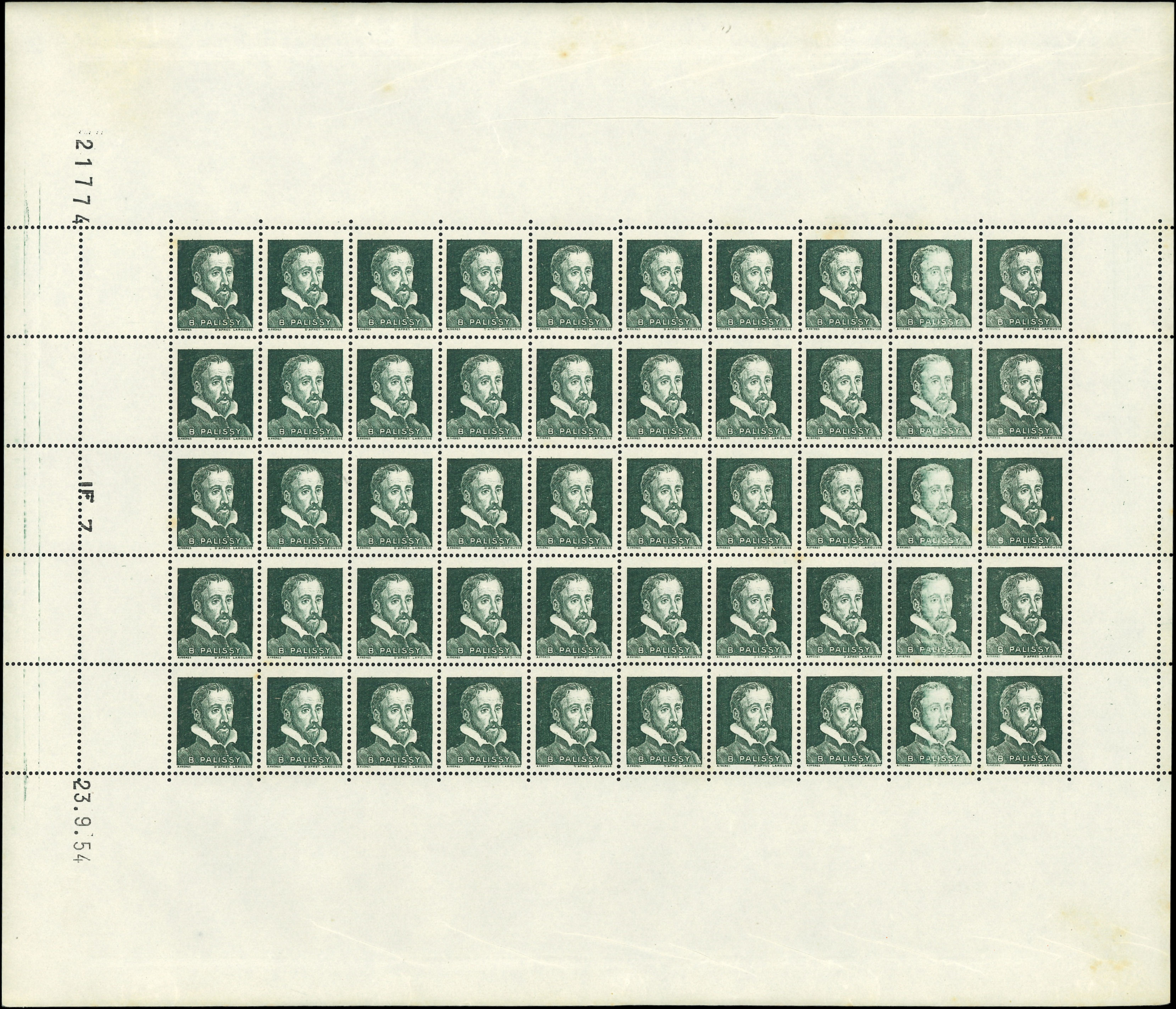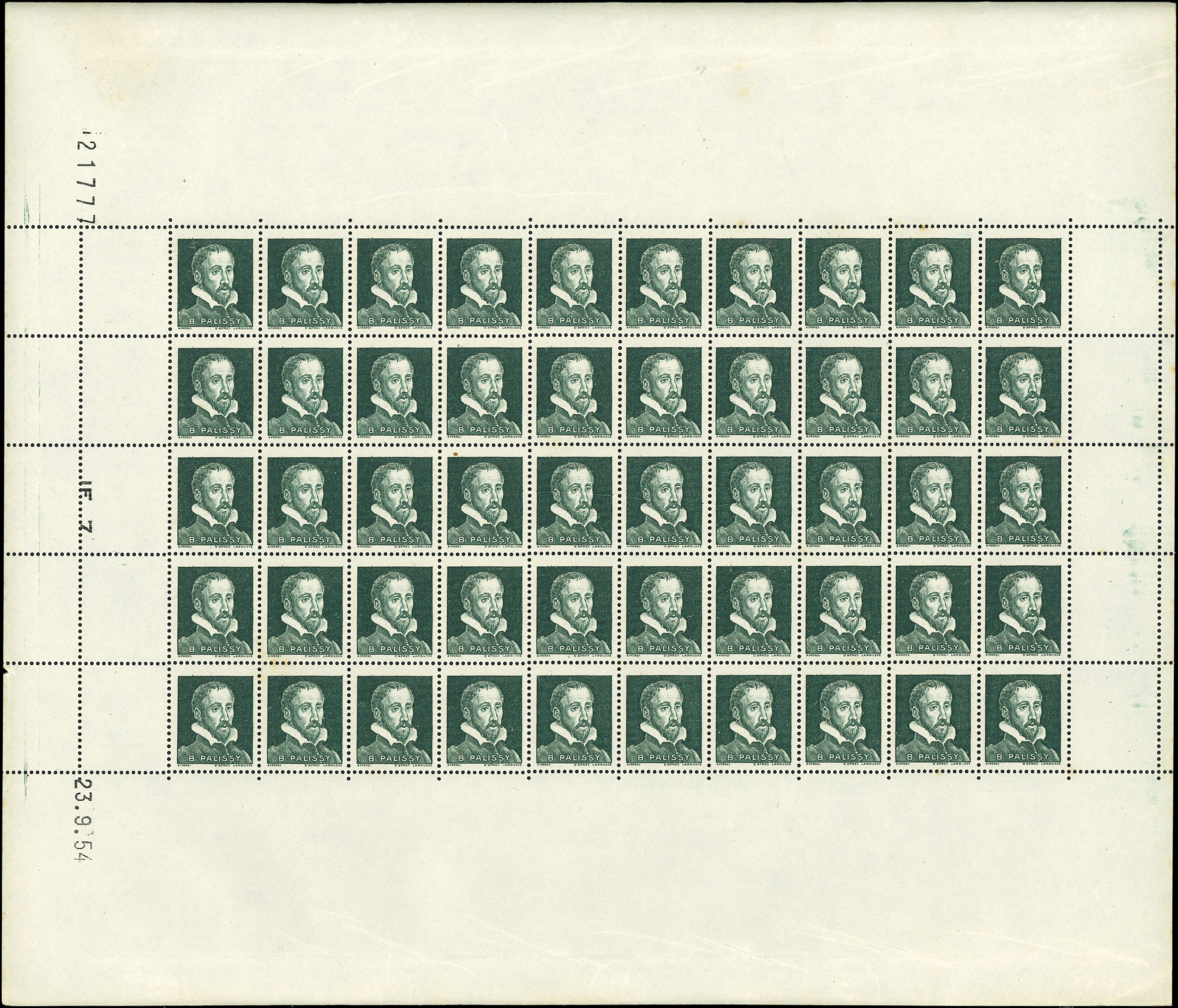 Lignée, 50c. bleu, T I, FEUILLE de 150, découpe partielle, fraîcheur postale, TTB (Image)