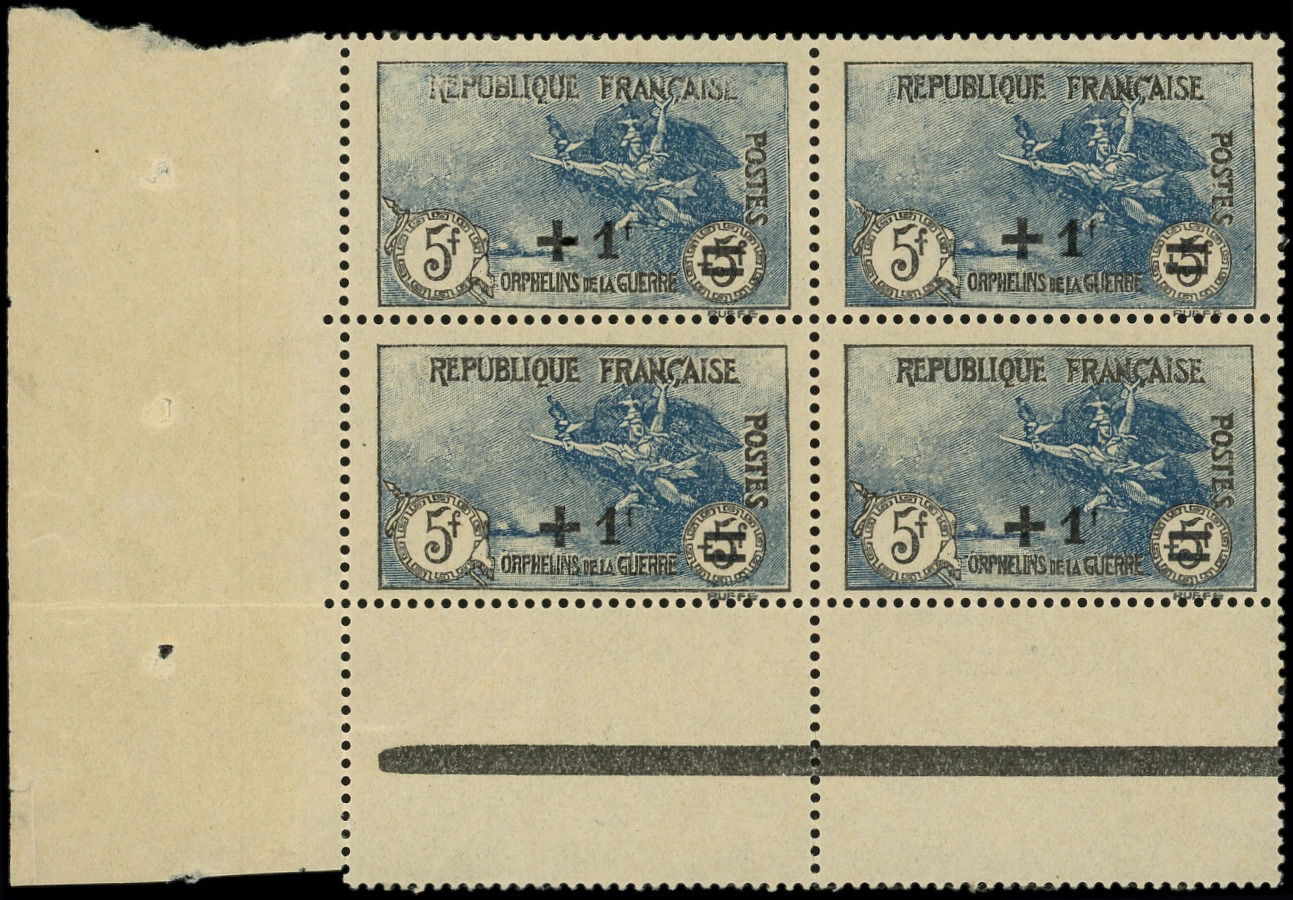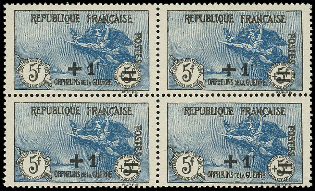 Orphelins, +1f. s. 5f. + 5f. noir et bleu, 1er tirage, BLOC de 4, TB (Image)