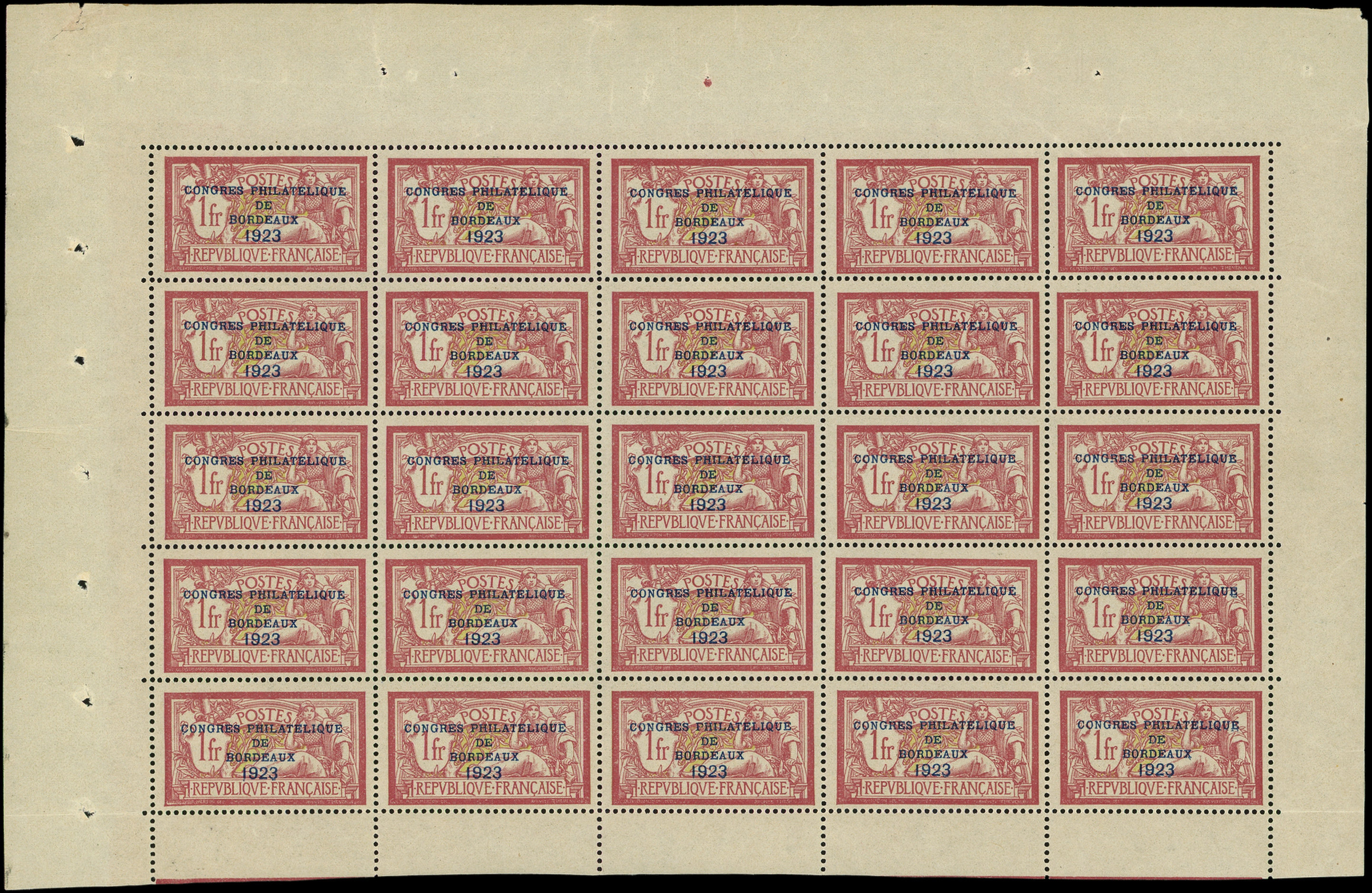 Bordeaux, 1f. lie de vin, PANNEAU de 25 haut de feuille, très bon centrage d'ensemble, TB (Image)