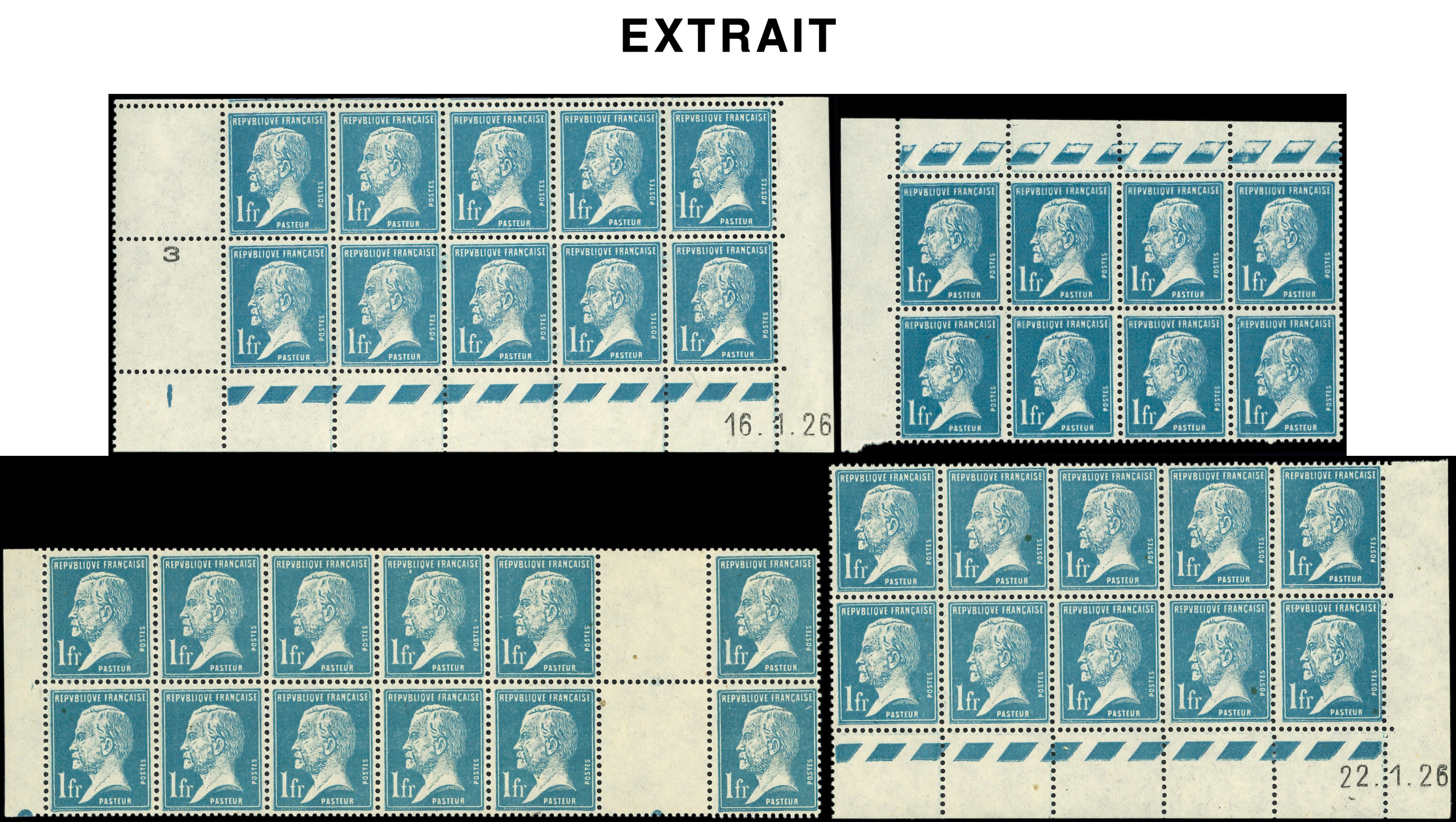 Pasteur, la série par 100 ex., la plupart en FEUILLES ou blocs, le N°170 x 200, TB (Image)