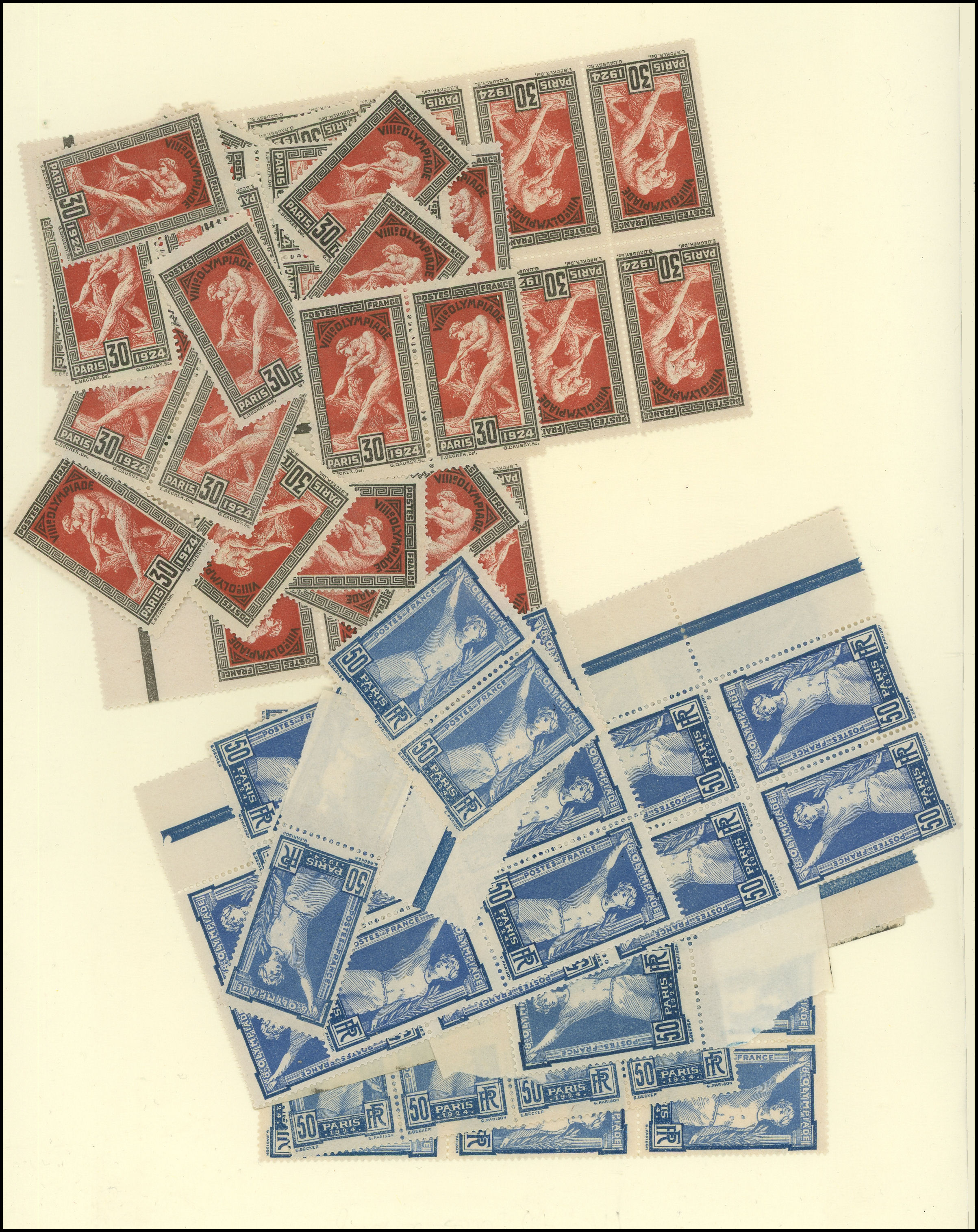 1924, 10c. (76), 25c. (21), 30c. (50), 50c. (50), en blocs ou égrainés, TB (Image)