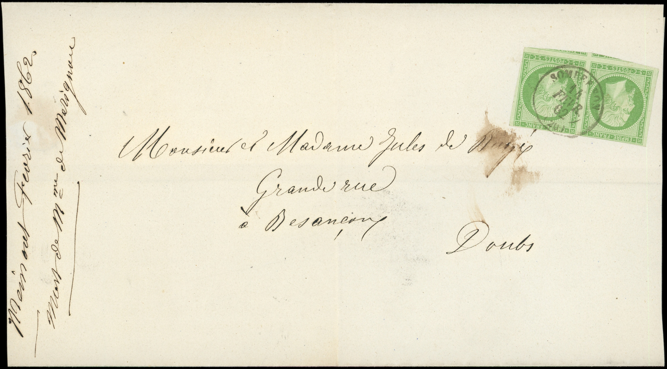 PAIRE marge au filet en haut, obl. càd T15 SOMBERNON 14/2/62 s. LSC, TB (Image)