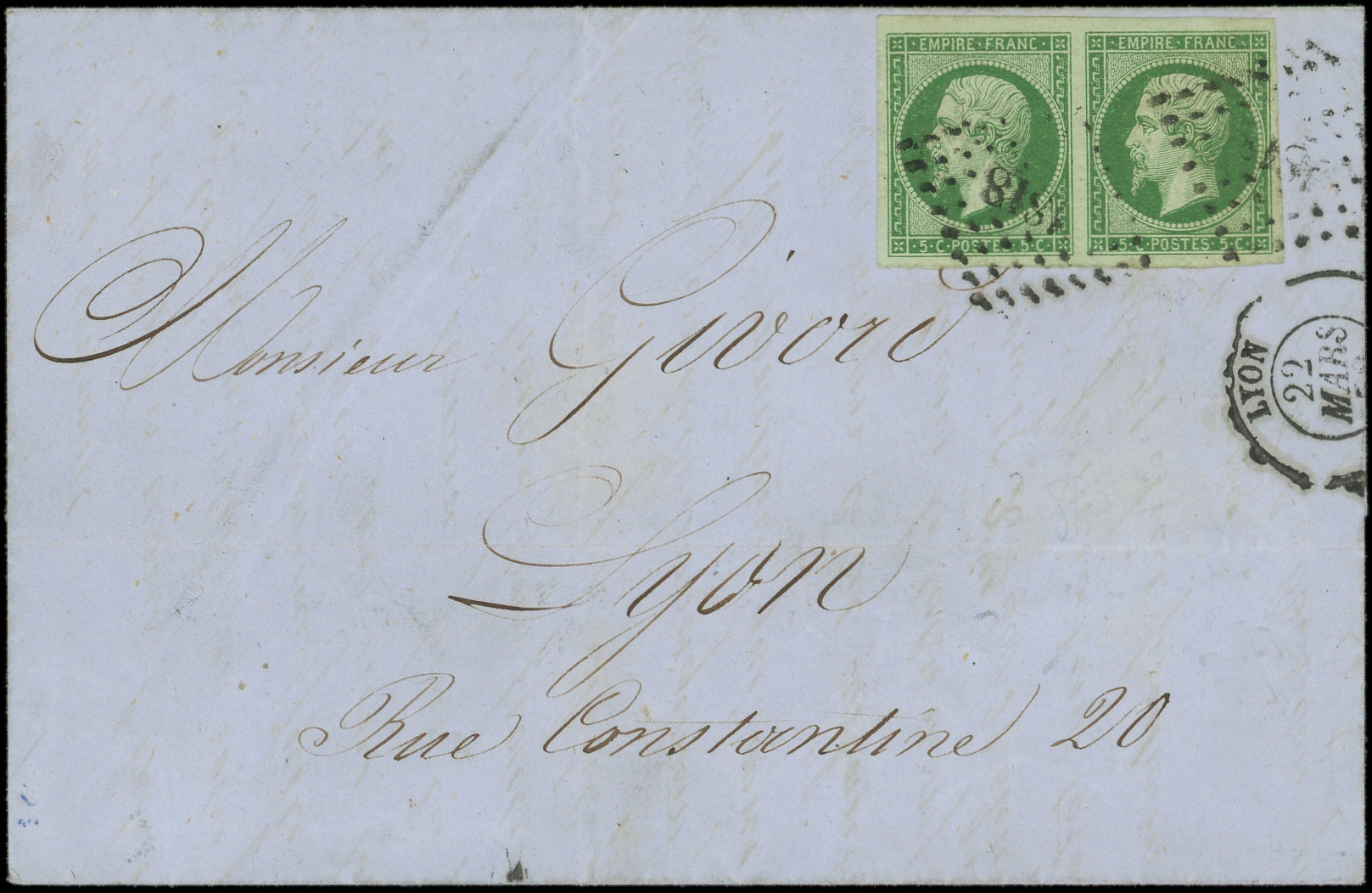 nuance foncée, PAIRE obl. PC 1818 s. LAC, càd T15 LYON 22/3/58, TTB (Image)