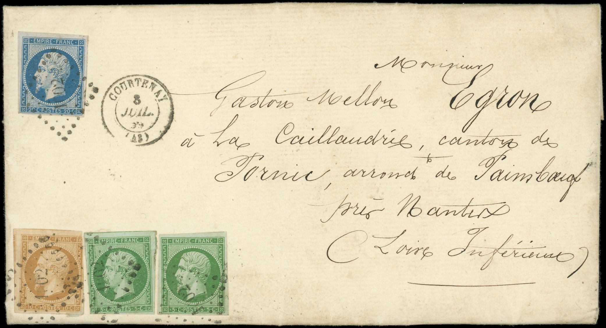 5c. (2), 10c. et 20c. obl. PC 1002 s. Env. au 2e échelon, càd T15 COURTENAY 8/7/59, 2 t. p.d. sinon TTB (Image)