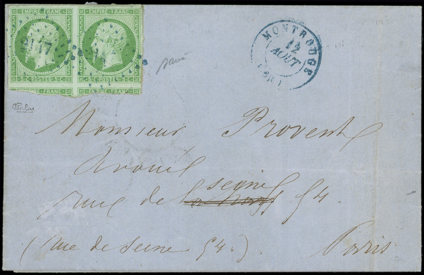 PAIRE touchée, obl. ETOILE s. LSC, càd PARIS 27/6/55, le tout en BLEU, frappe TTB (Image)