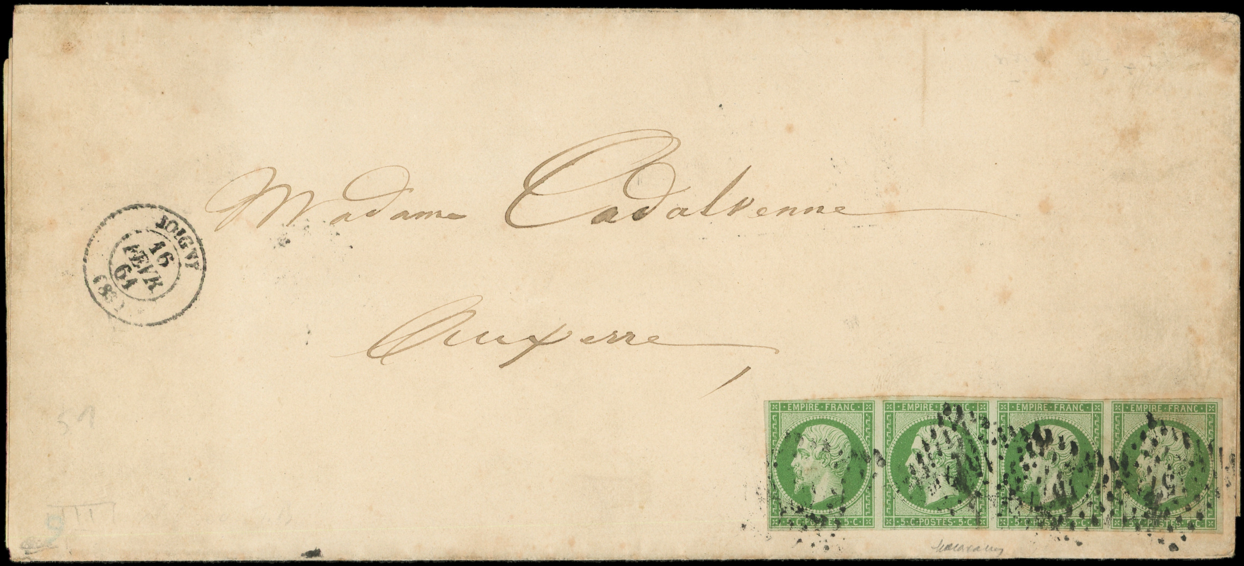 BANDE de 4 obl. PC 1577 s. Faire-part, càd T15 JOIGNY 16/2/61, TB (Image)