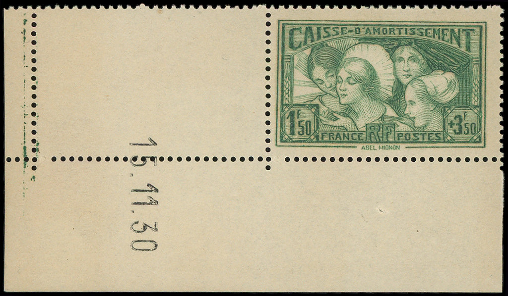 Françaises, 1f.50 + 3f.50 vert-jaune, CD 15/11/30, TB (Image)