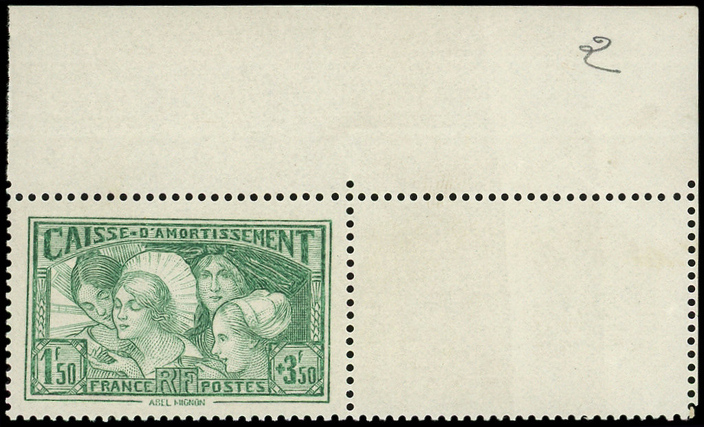 Françaises, 1f.50 + 3f.50 vert-jaune, cdf, TB (Image)