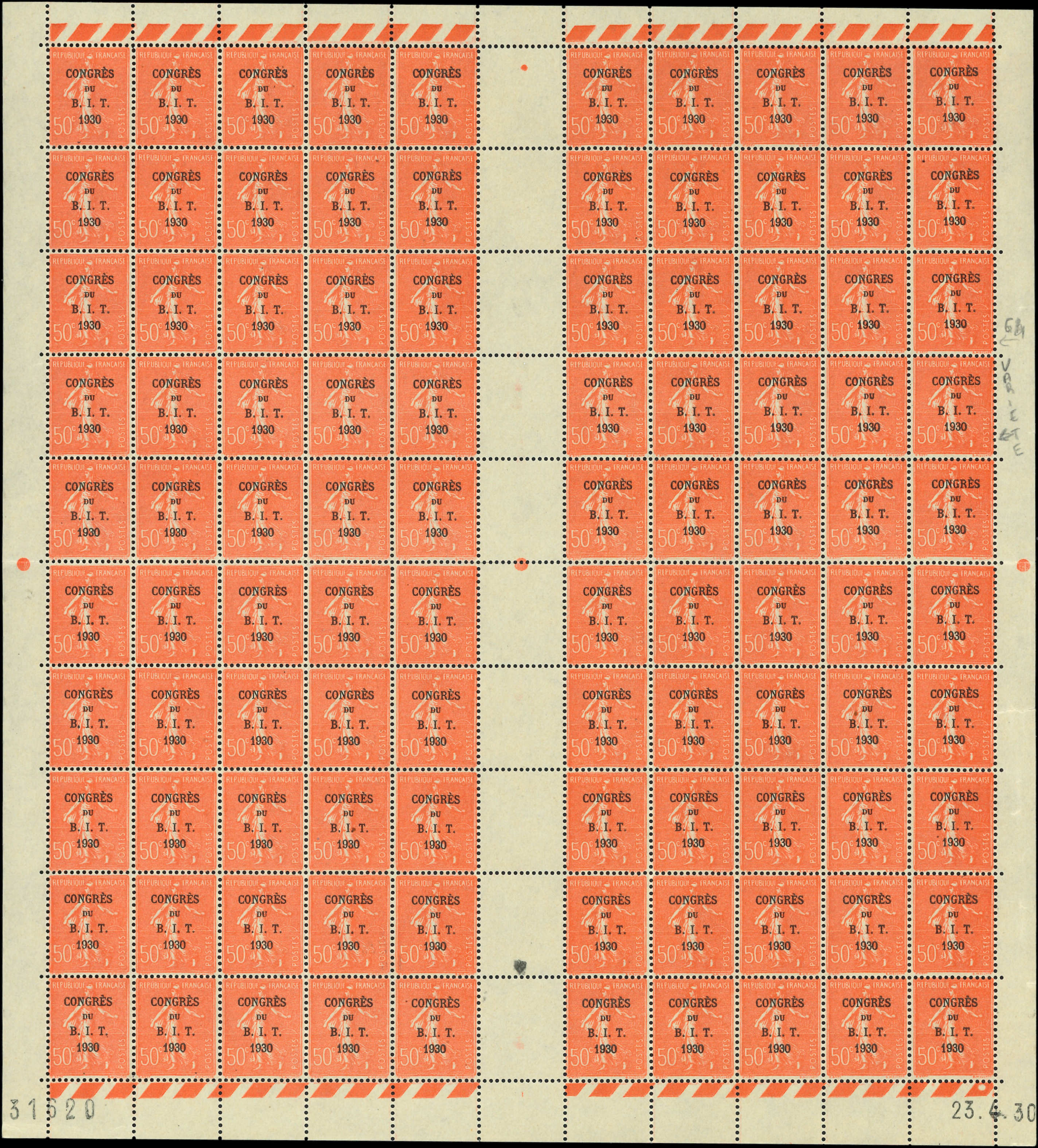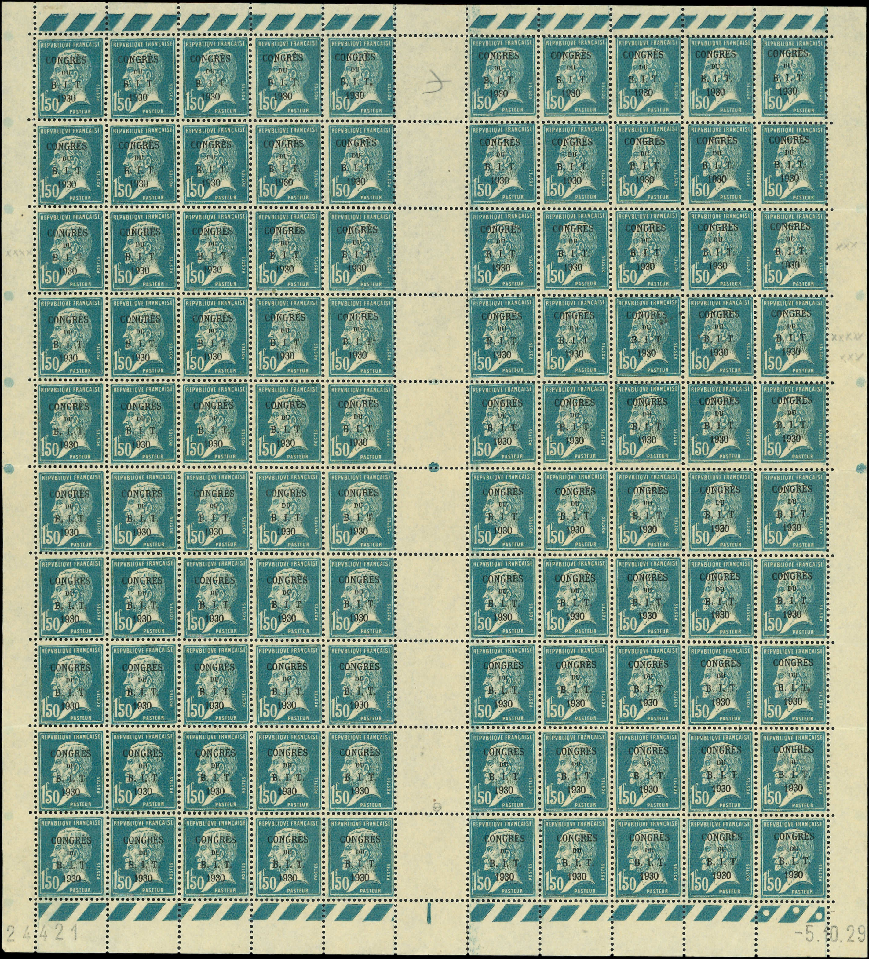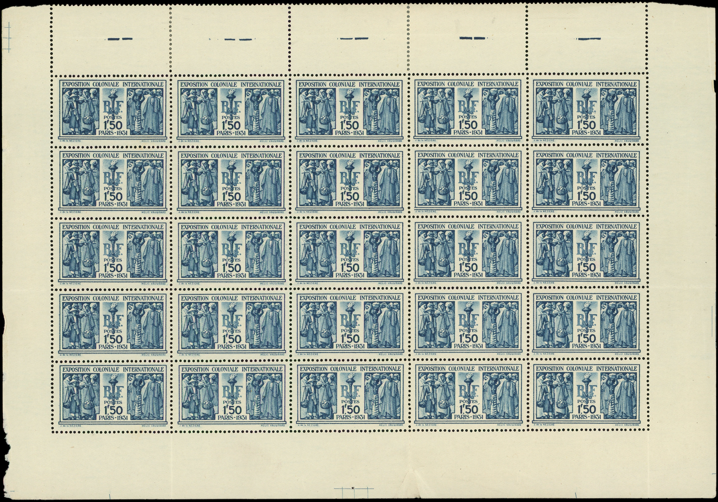 Coloniale, 1f.50 bleu, PANNEAU de 25 en partie découpé au centre, TB (Image)