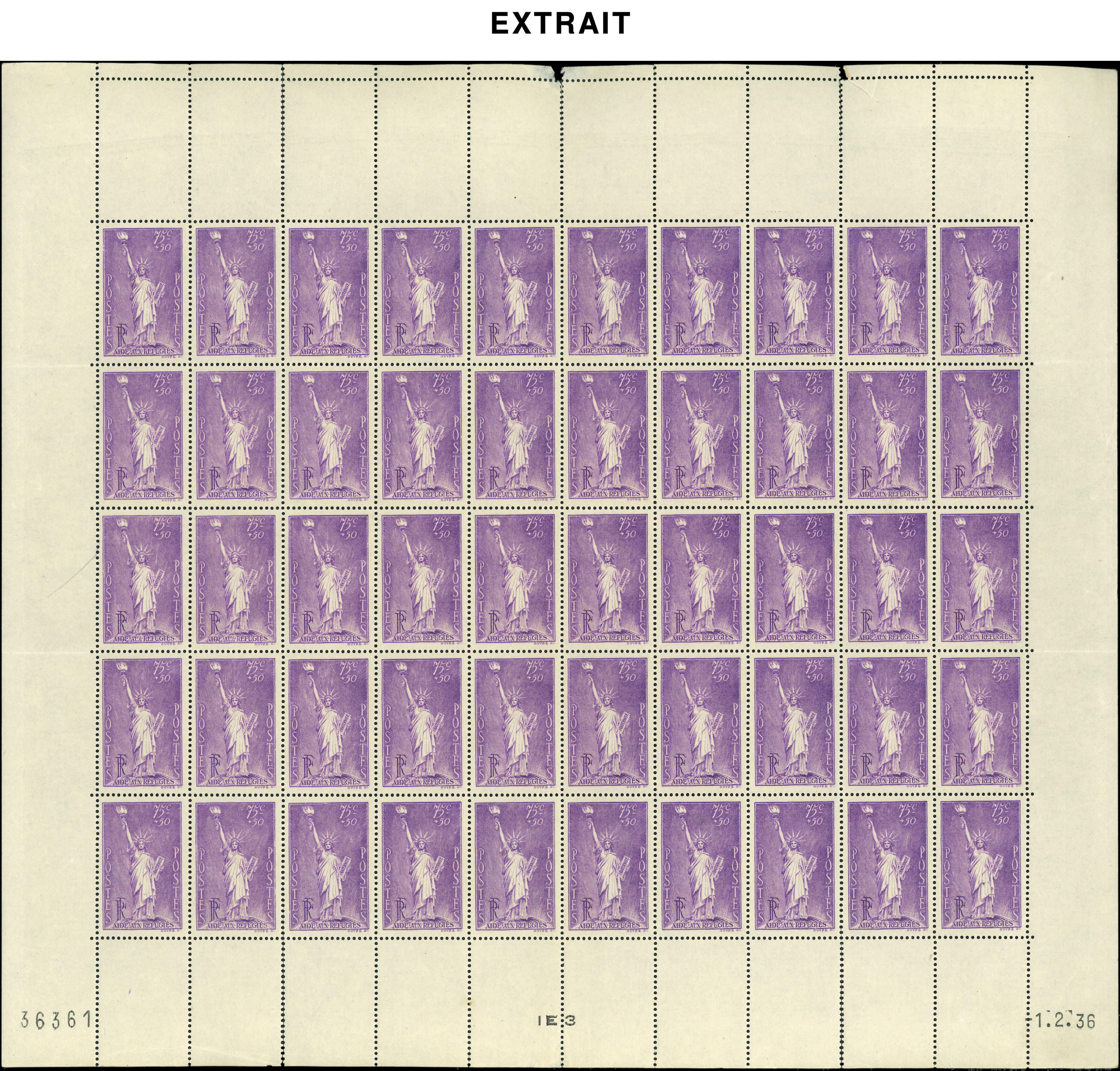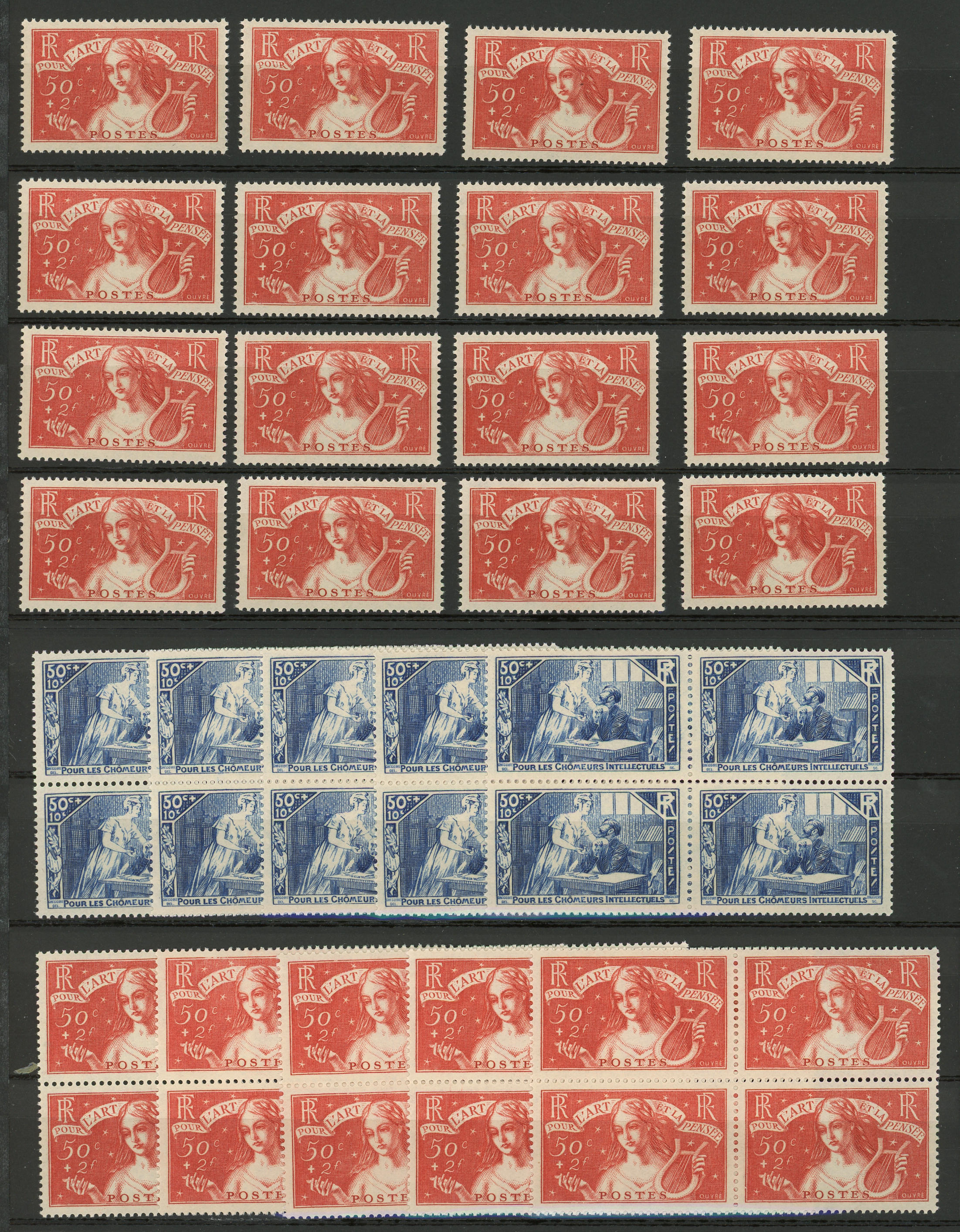 75c. + 50c. violet, 545 ex. en feuilles, panneaux ou égrainés, TB (Image)