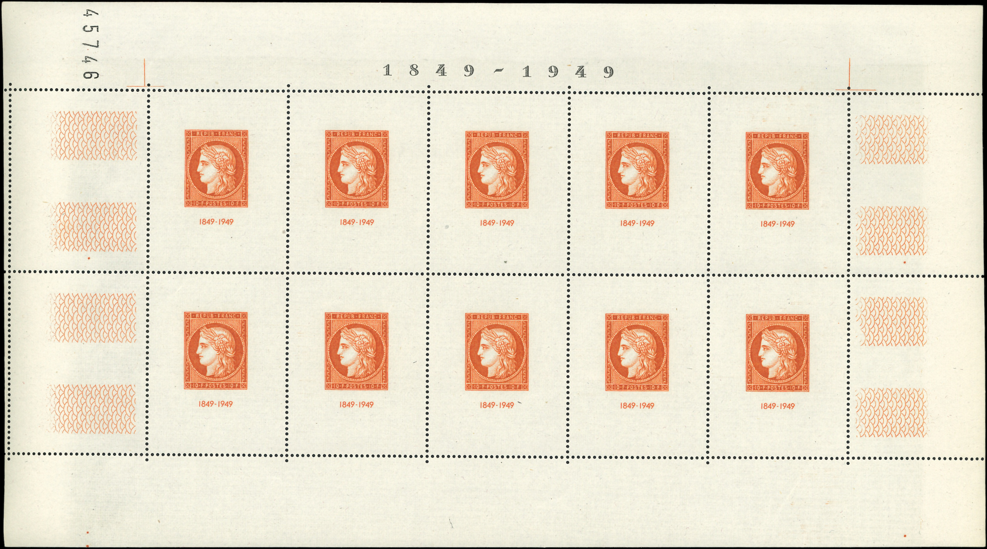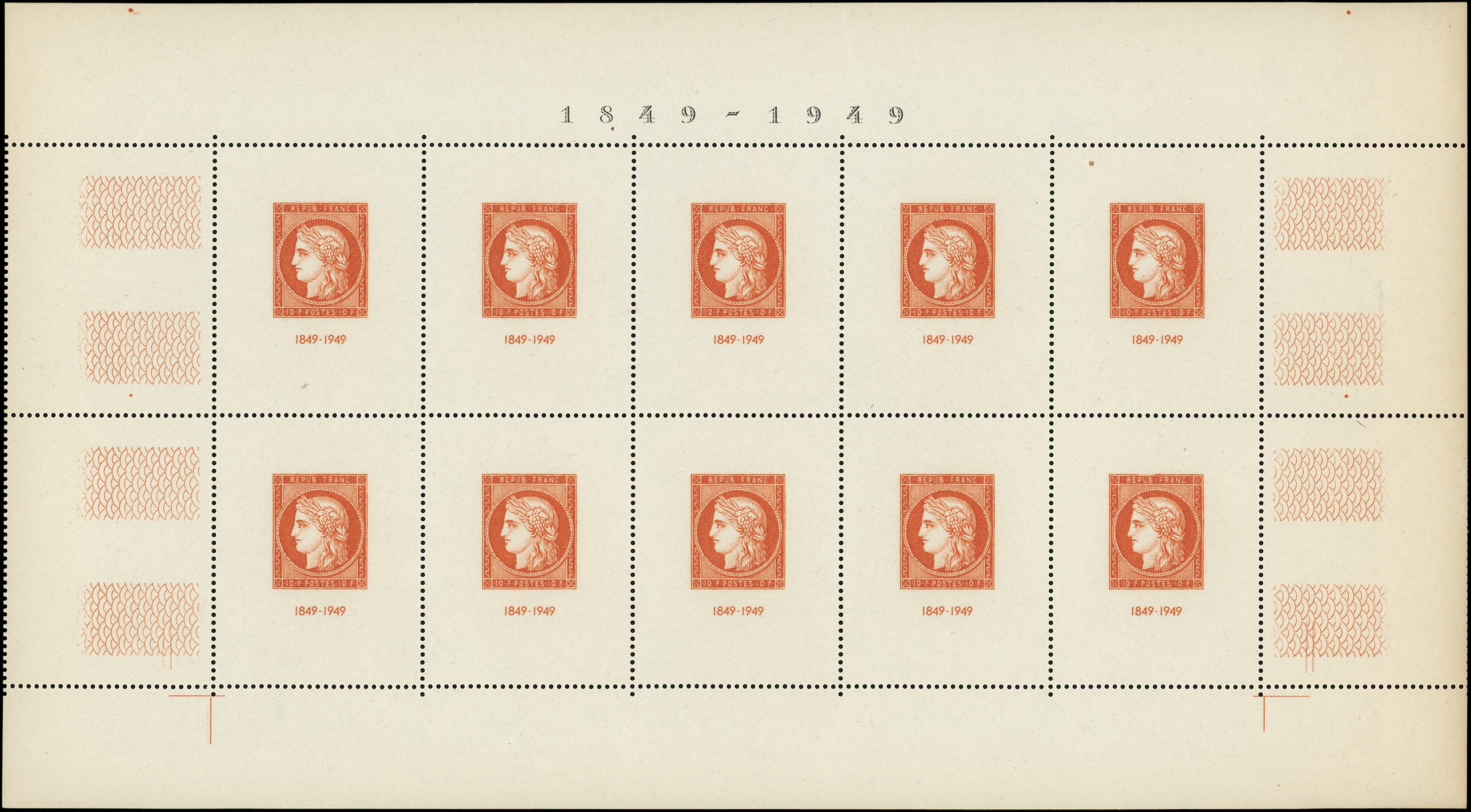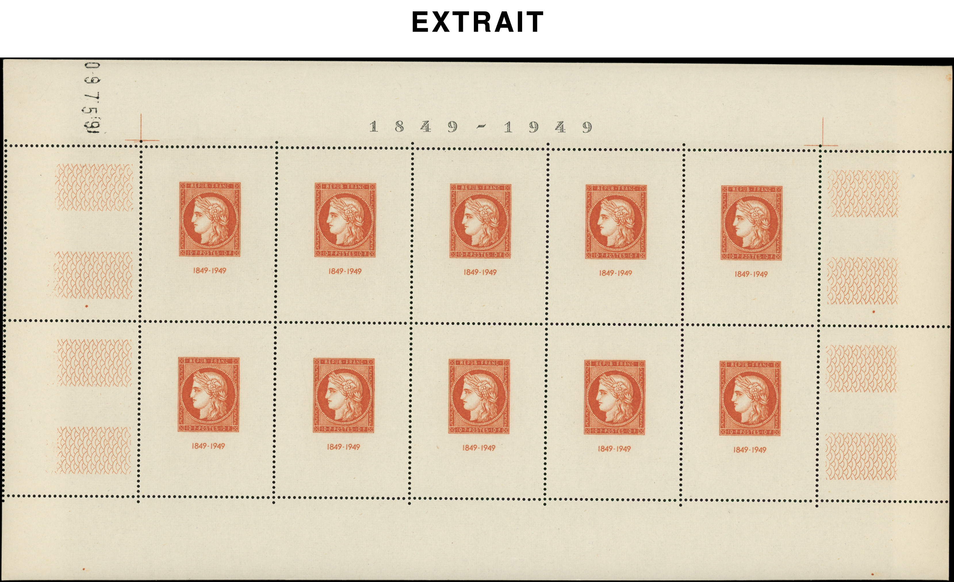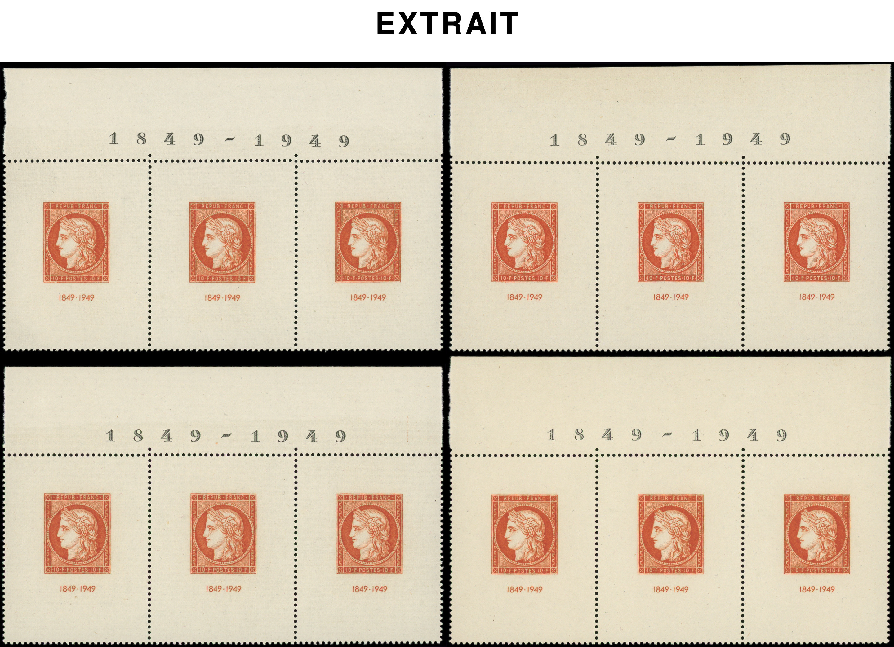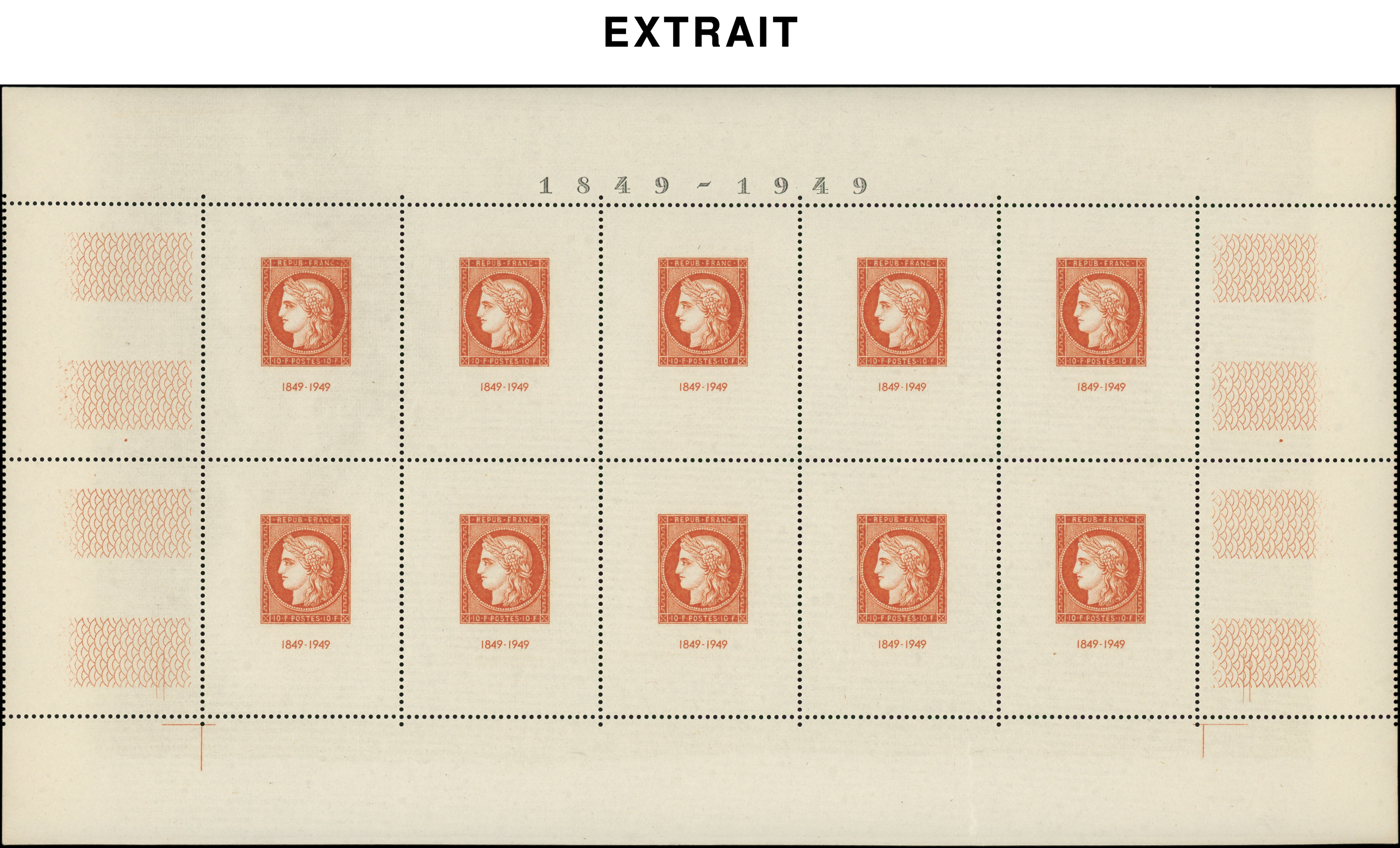 10f. vermillon, 31 ex. dont 6 bandes de 3 avec bords 1849-1949, TB (Image)