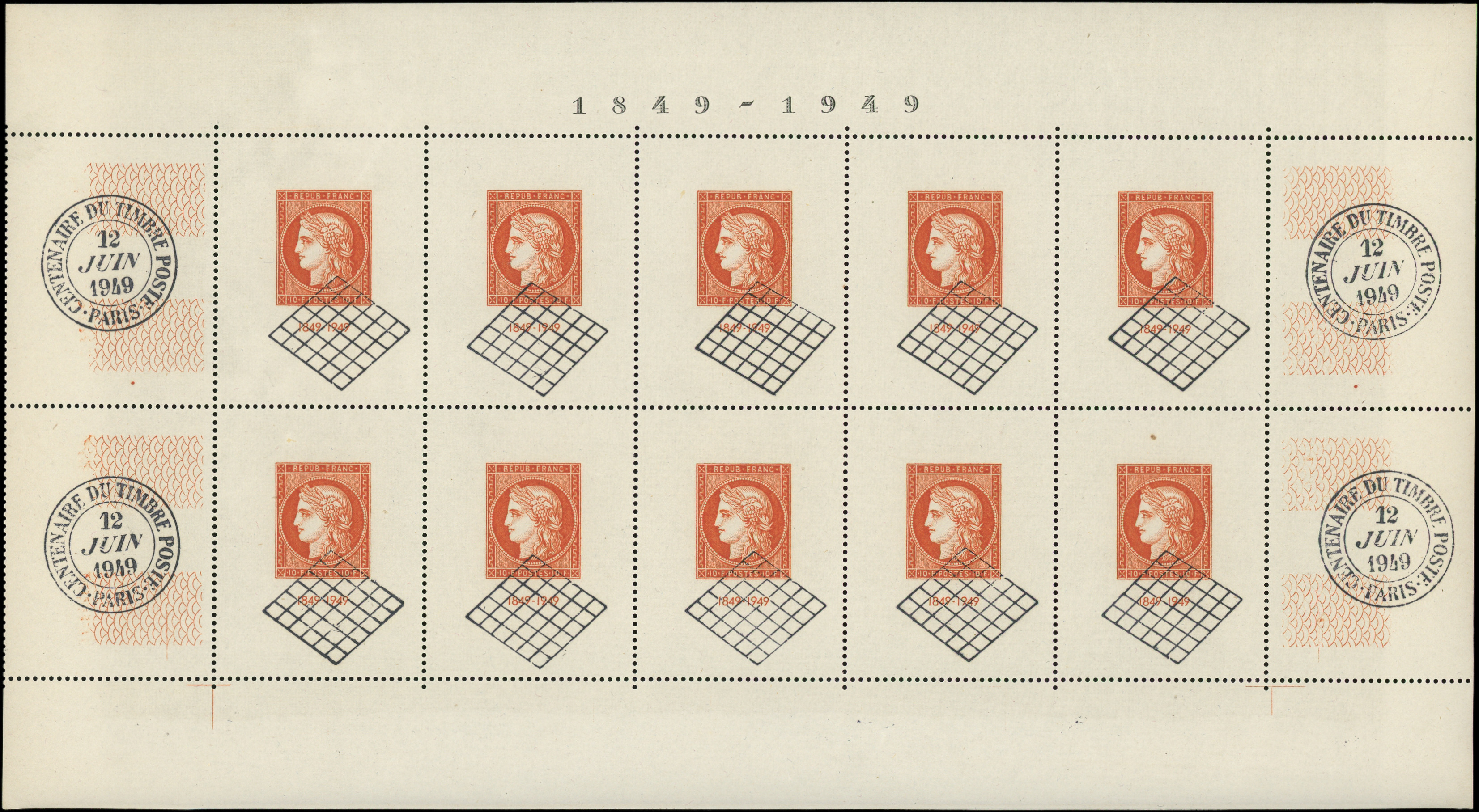 C.I.T.E.X., 10f. vermillon, 1 FEUILLE et 10 ex., tous obl. GRILLE ou càd du centenaire, TB (Image) (Image2)