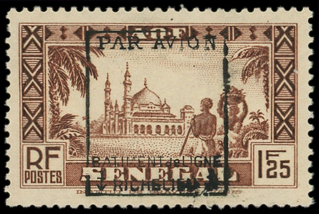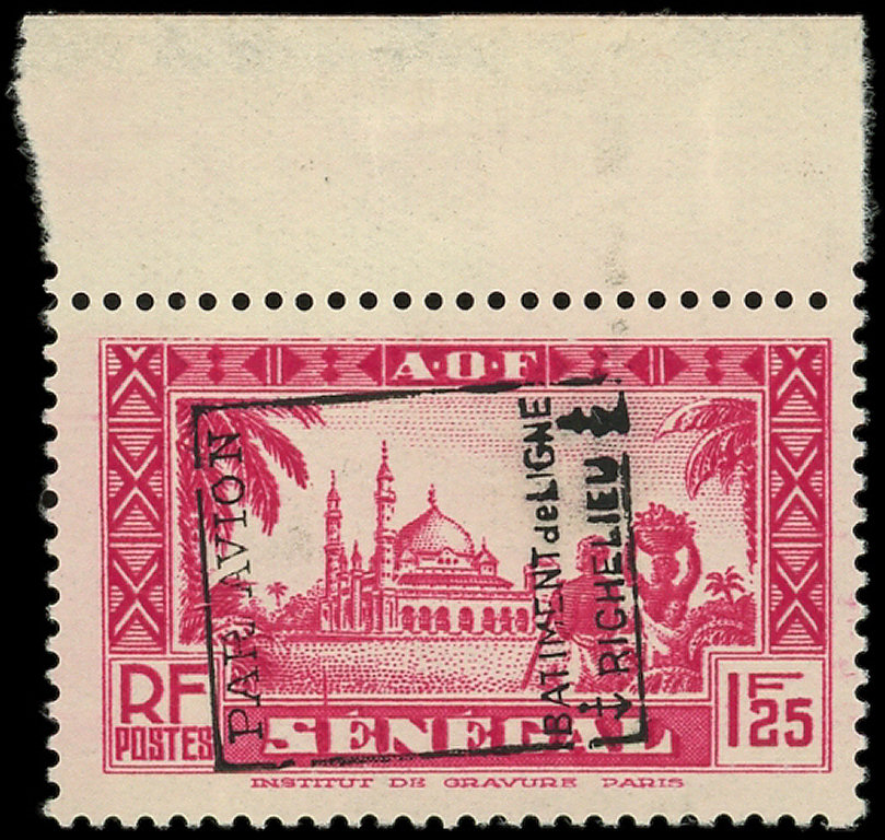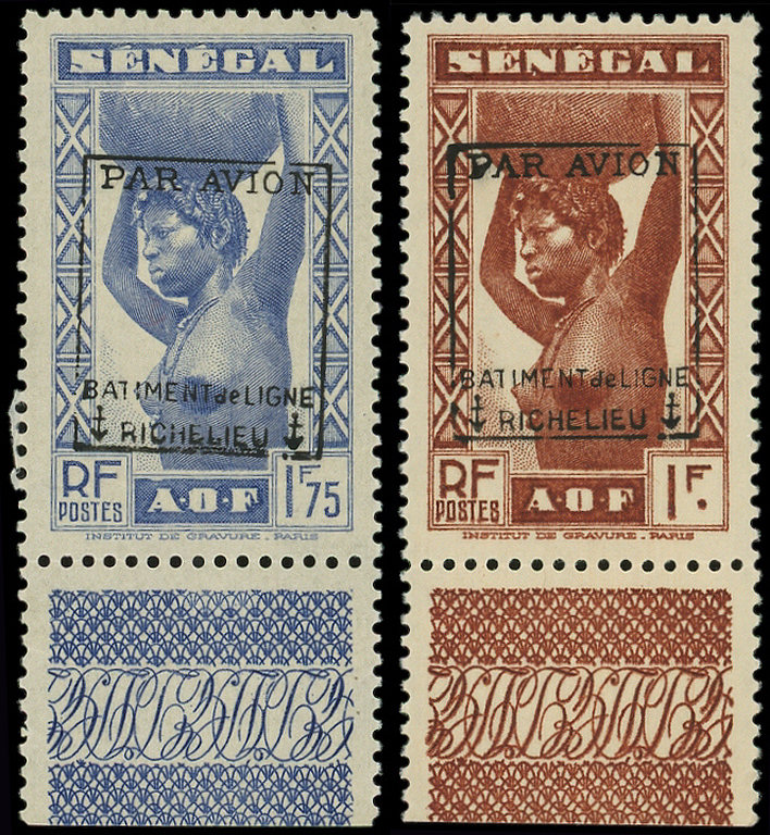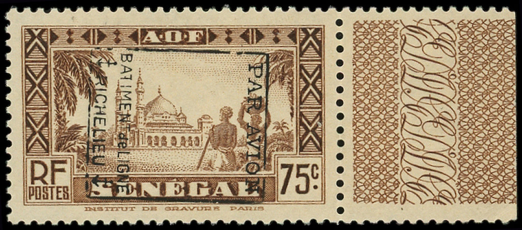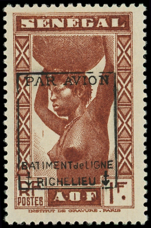 brun-rouge bdf et 1f75 outremer du Sénégal, BATIMENT de LIGNE RICHELIEU, bdf, TB (Image)