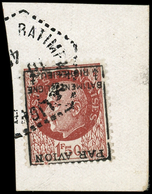 brun-rouge, BATIMENT de LIGNE RICHELIEU, surcharge RENVERSEE, obl. s. fragt, TB (Image)