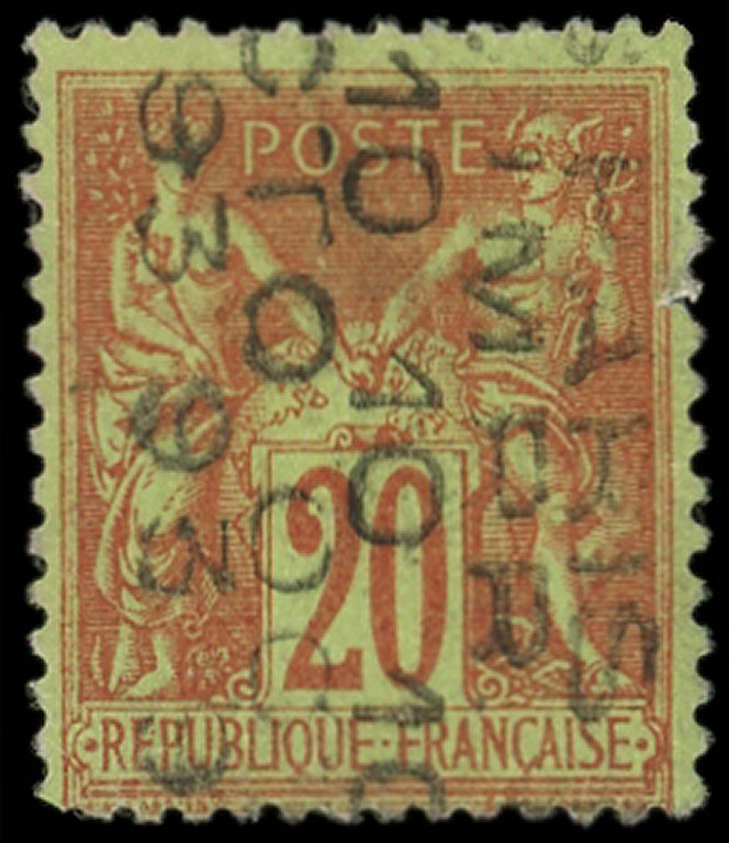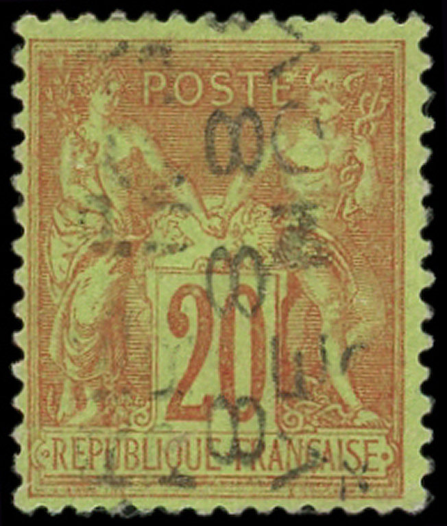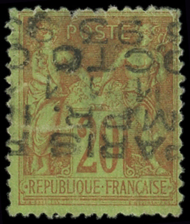 brique sur vert, 11 OCTO, surch. horizontale renversée, défectueux (Image)