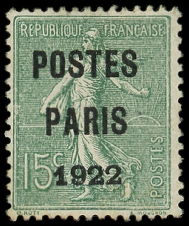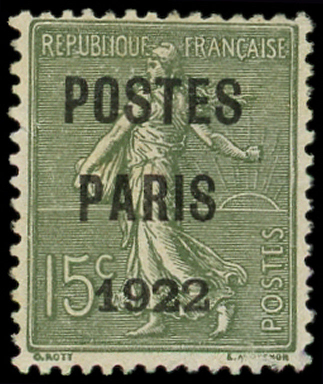 vert-olive, POSTES PARIS 1922, TB. J (Image)