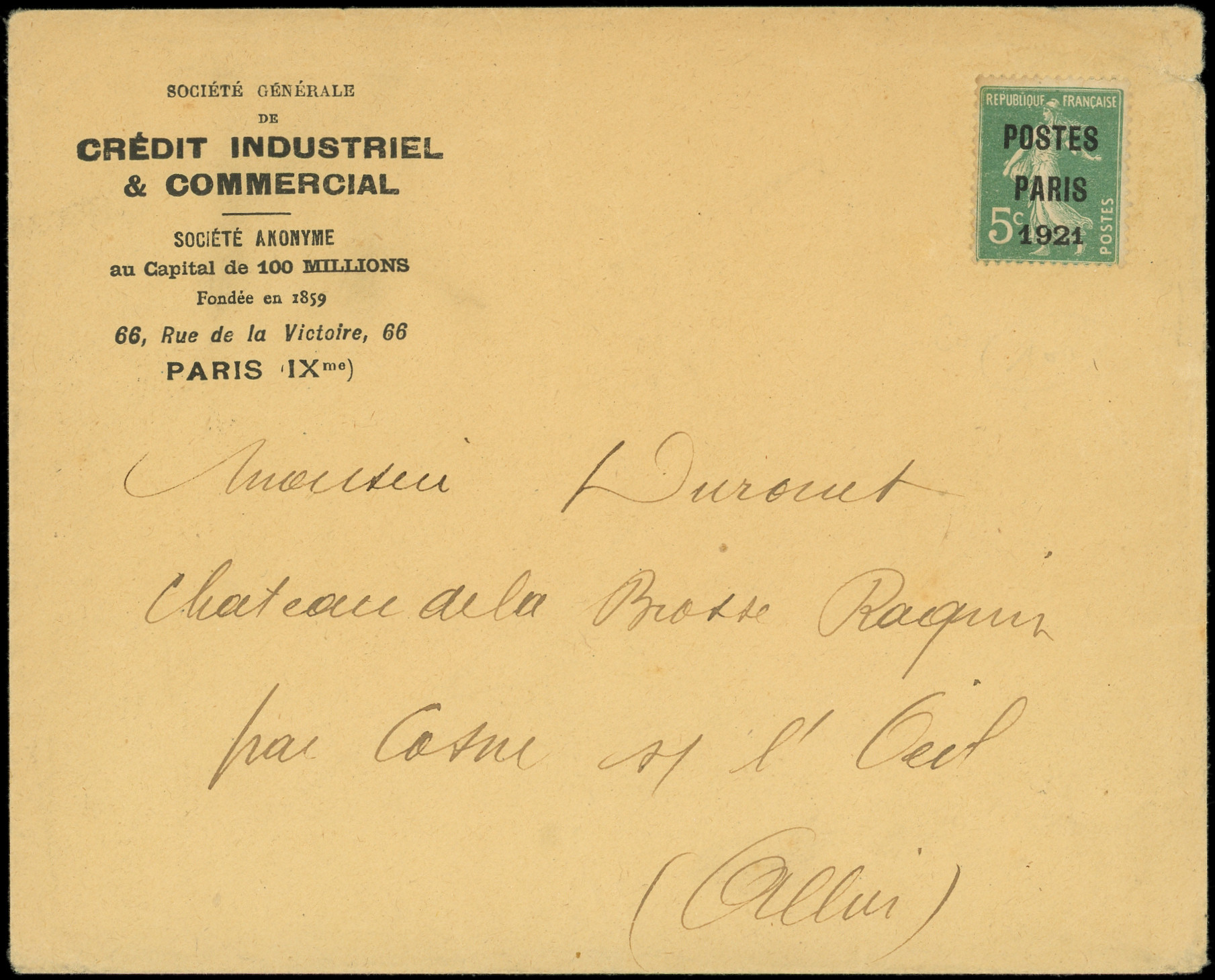 clair, POSTES PARIS 1921, GRAND 192 sur Env. du CIC, arr. COSNE d'ALLIER 18/11/( ), RRR, TB (Image) (Image2)