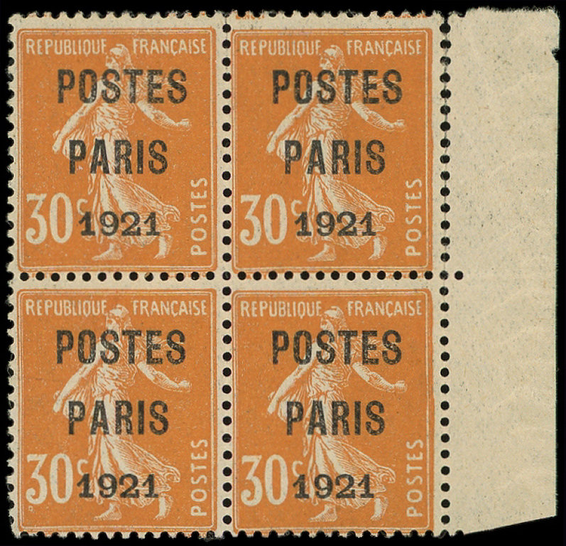 foncé POSTES PARIS 1921, BLOC de 4, PAIRE sup. *, TB. Br (Image)