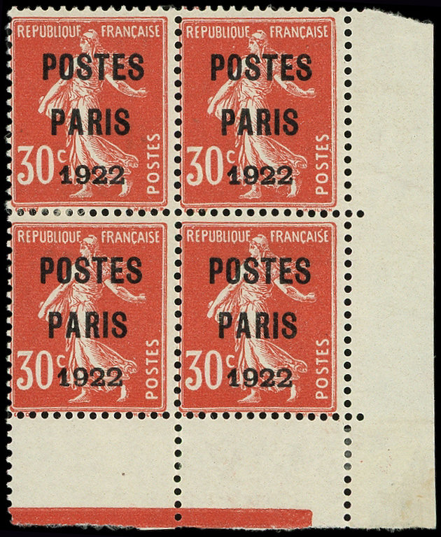POSTES PARIS 1922, BLOC de 4 cdf, 2 ex. *, R et TB. Br (Image)