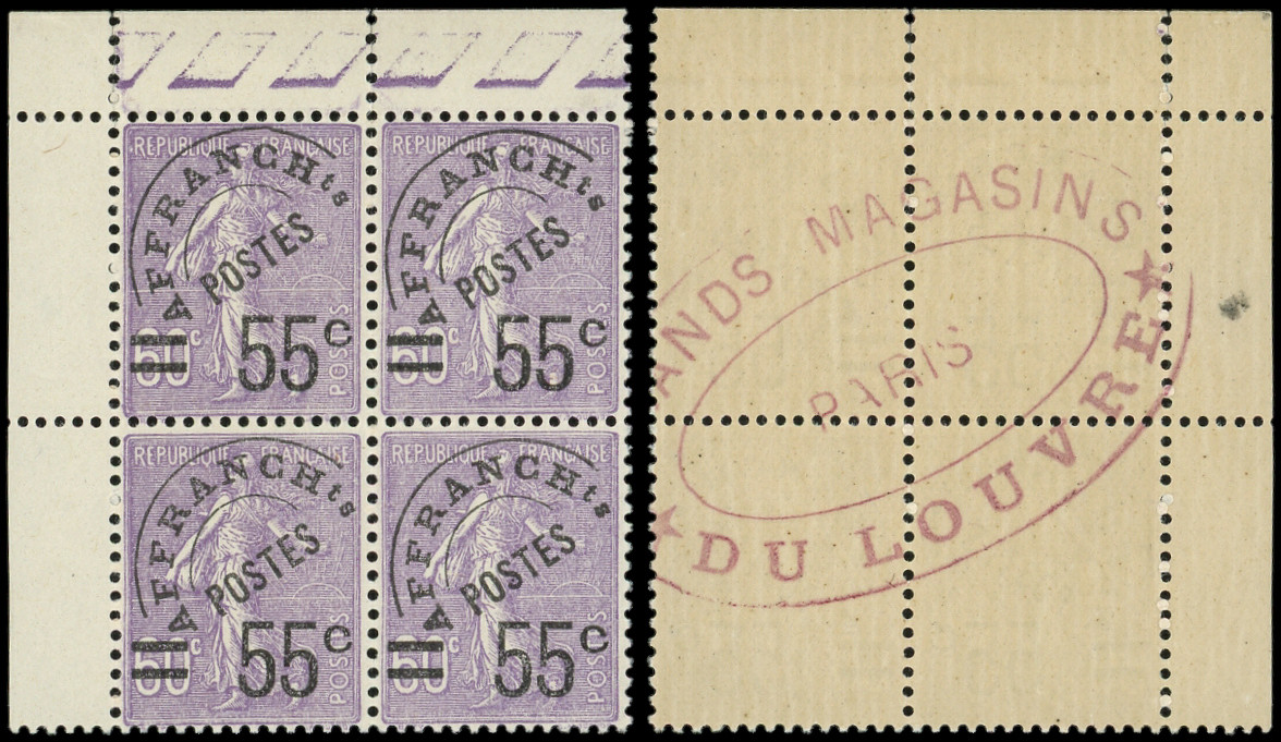 violet, BLOC de 4 cdf, cachet des Magasins du Louvre au verso, TB (Image)